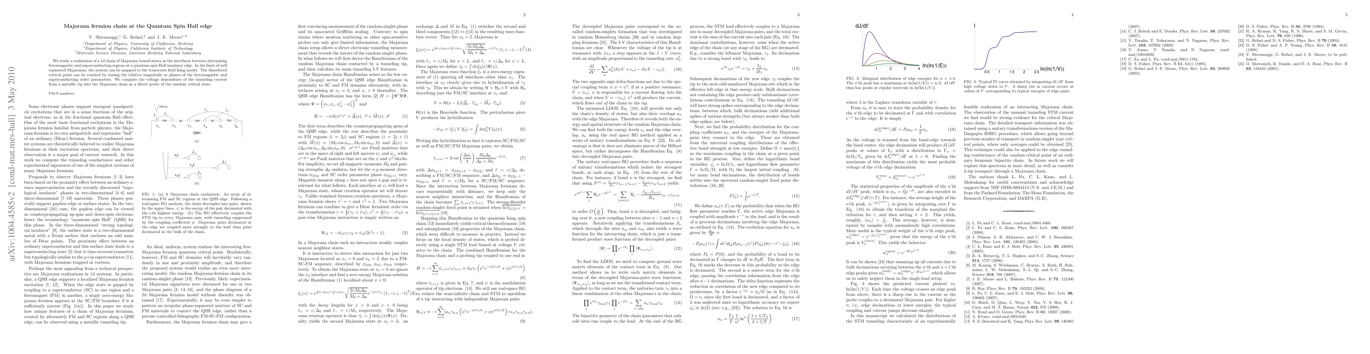 This paper investigates a 1D chain of Majorana fermions at the edge of a quantum spin Hall insulator, where alternating ferromagnetic and superconducting regions create Majorana bound states. The study explores the disordered critical point and uses tunneling current measurements as a probe of the random critical state.