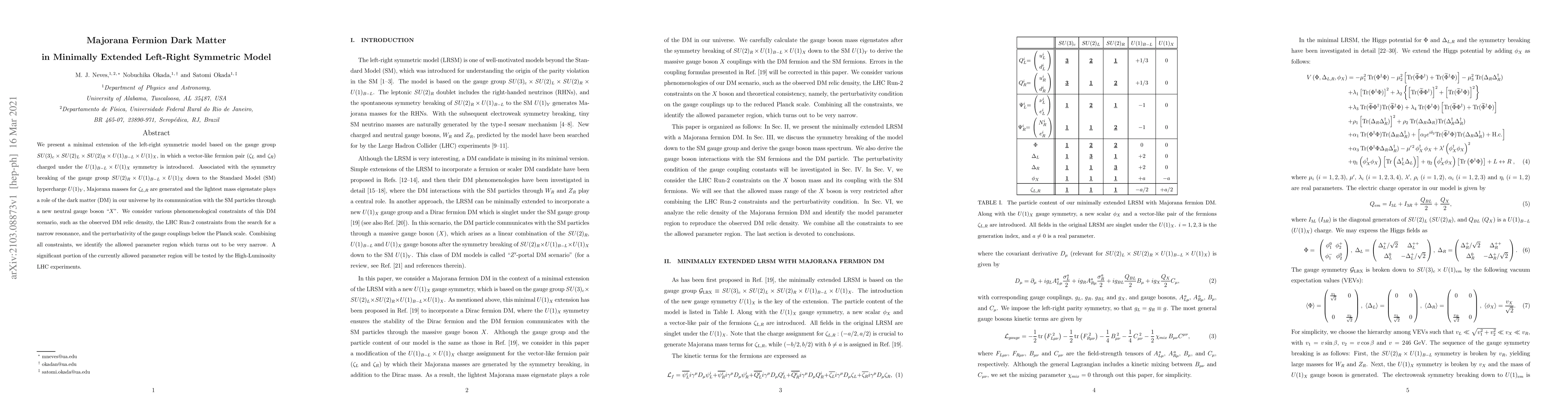 We present a minimal extension of the left-right symmetric model based on the gauge group $SU(3)_{c} \times SU(2)_{L} \times SU(2)_{R} \times U(1)_{B-L} \times U(1)_{X}$, in which a vector-like fermion pair ($\zeta_L$ and $\zeta_R$) charged under the $U(1)_{B-L} \times U(1)_X$ symmetry is introduced. Associated with the symmetry breaking of the gauge group $SU(2)_{R} \times U(1)_{B-L} \times U(1)_{X}$ down to the Standard Model (SM) hypercharge $U(1)_Y$, Majorana masses for $\zeta_{L, R}$ are generated and the lightest mass eigenstate plays a role of the dark matter (DM) in our universe by its communication with the SM particles through a new neutral gauge boson "$X$". We consider various phenomenological constraints of this DM scenario, such as the observed DM relic density, the LHC Run-2 constraints from the search for a narrow resonance, and the perturbativity of the gauge couplings below the Planck scale. Combining all constraints, we identify the allowed parameter region which turns out to be very narrow. A significant portion of the currently allowed parameter region will be tested by the High-Luminosity LHC experiments.