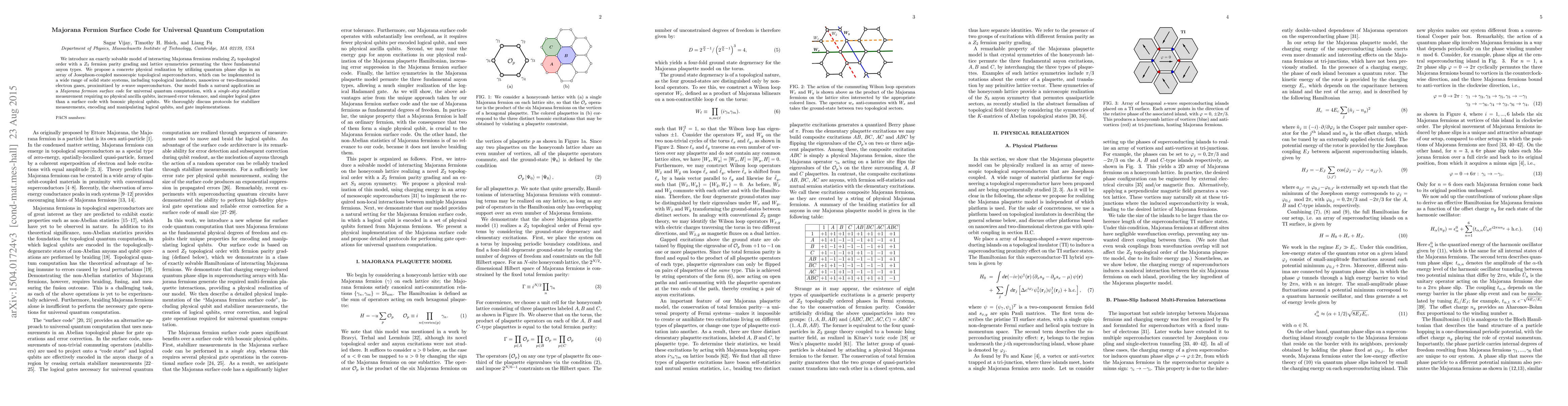 This paper proposes a Majorana fermion surface code model for universal quantum computation using interacting Majorana fermions with $Z_{2}$ topological order, implemented via quantum phase slips in Josephson-coupled mesoscopic topological superconductors. It offers increased error tolerance and simpler logical gates compared to bosonic qubit surface codes.
