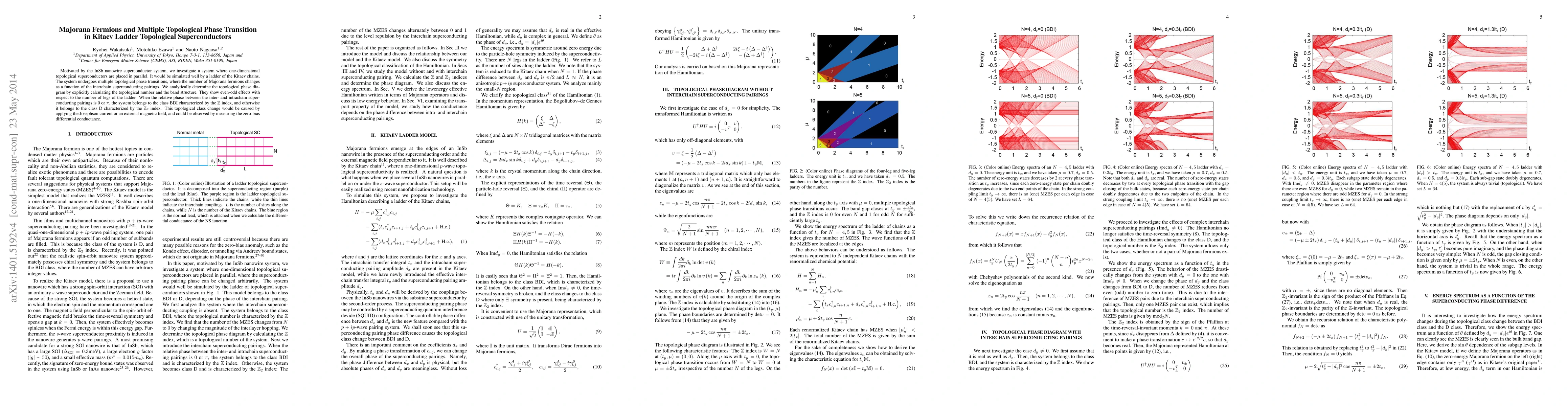 Motivated by the InSb nanowire superconductor system, we investigate a system where one-dimensional topological superconductors are placed in parallel. It would be simulated well by a ladder of the Kitaev chains. The system undergoes multiple topological phase transitions, where the number of Majorana fermions changes as a function of the interchain superconducting pairings. We analytically determine the topological phase diagram by explicitly calculating the topological number and the band structure. They show even-odd effects with respect to the number of legs of the ladder. When the relative phase between the inter- and intrachain superconducting pairings is 0 or $\pi$, the system belongs to the class BDI characterized by the $\mathbb{Z}$ index, and otherwise it belongs to the class D characterized by the $\mathbb{Z}_2$ index. This topological class change would be caused by applying the Josephson current or an external magnetic field, and could be observed by measuring the zero-bias differential conductance.