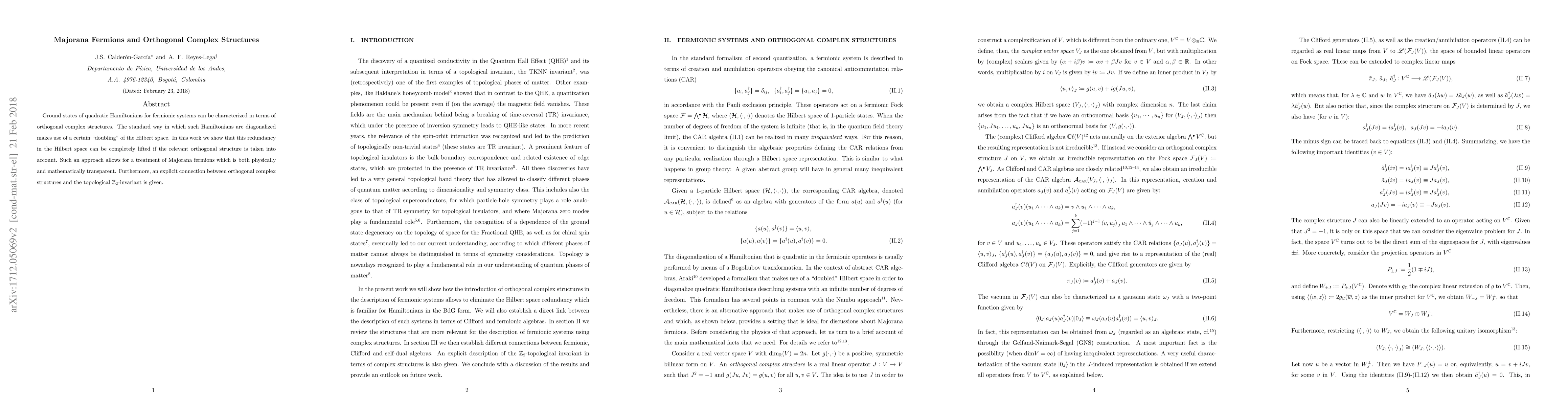 Ground states of quadratic Hamiltonians for fermionic systems can be characterized in terms of orthogonal complex structures. The standard way in which such Hamiltonians are diagonalized makes use of a certain "doubling" of the Hilbert space. In this work we show that this redundancy in the Hilbert space can be completely lifted if the relevant orthogonal structure is taken into account. Such an approach allows for a treatment of Majorana fermions which is both physically and mathematically transparent. Furthermore, an explicit connection between orthogonal complex structures and the topological $\mathbb Z_2$-invariant is given.