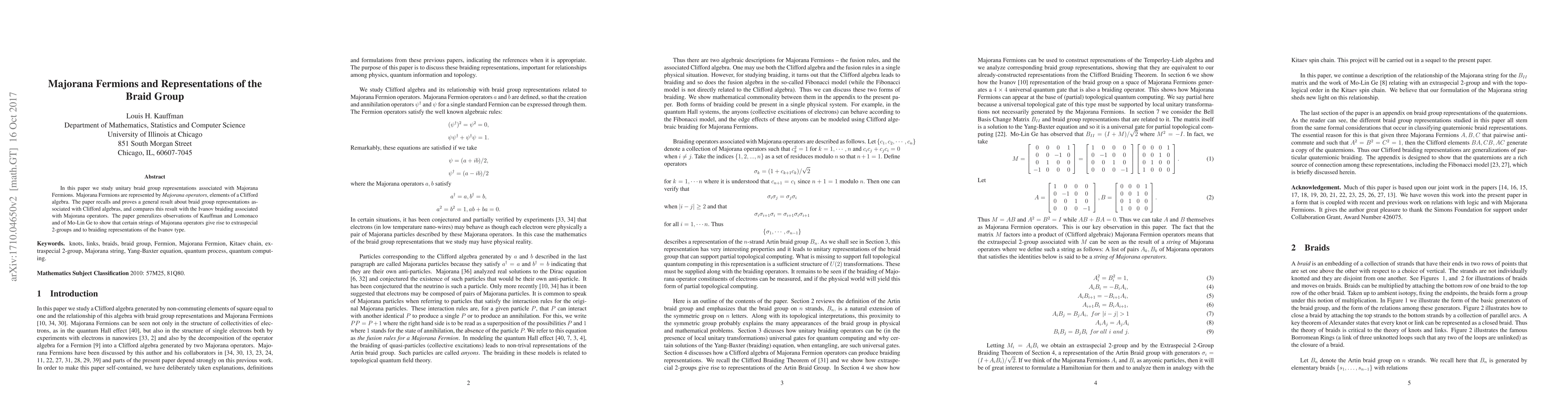 In this paper we study unitary braid group representations associated with Majorana Fermions. Majorana Fermions are represented by Majorana operators, elements of a Clifford algebra. The paper recalls and proves a general result about braid group representations associated with Clifford algebras, and compares this result with the Ivanov braiding associated with Majorana operators. The paper generalizes observations of Kauffman and Lomonaco and of Mo-Lin Ge to show that certain strings of Majorana operators give rise to extraspecial 2-groups and to braiding representations of the Ivanov type.