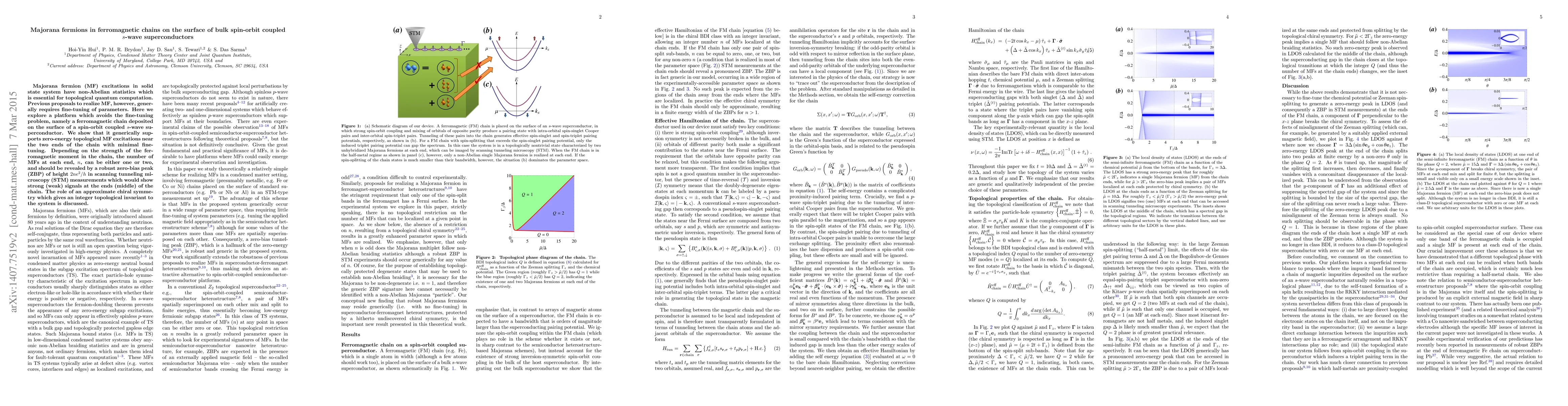 Majorana fermion (MF) excitations in solid state system have non-Abelian statistics which is essential for topological quantum computation. Previous proposals to realize MF, however, generally requires fine-tuning of parameters. Here we explore a platform which avoids the fine-tuning problem, namely a ferromagnetic chain deposited on the surface of a spin-orbit coupled $s$-wave superconductor. We show that it generically supports zero-energy topological MF excitations near the two ends of the chain with minimal fine-tuning. Depending on the strength of the ferromagnetic moment in the chain, the number of MFs at each end, $n$, can be either one or two, and should be revealed by a robust zero-bias peak (ZBP) of height $2ne^2/h$ in scanning tunneling microscopy (STM) measurements which would show strong (weak) signals at the ends (middle) of the chain. The role of an approximate chiral symmetry which gives an integer topological invariant to the system is discussed.