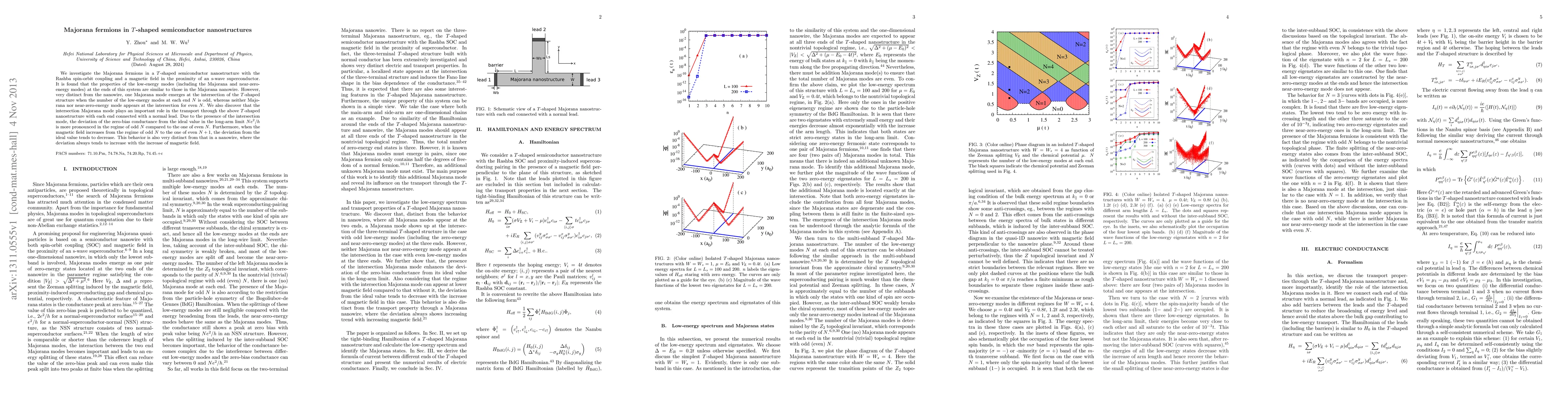 This research explores Majorana fermions in a $T$-shaped semiconductor nanostructure with spin-orbit coupling and a magnetic field near an s-wave superconductor, discovering that an intersection Majorana mode emerges when the number of low-energy modes $N$ is odd, significantly affecting transport properties and conductance deviation from ideal values.