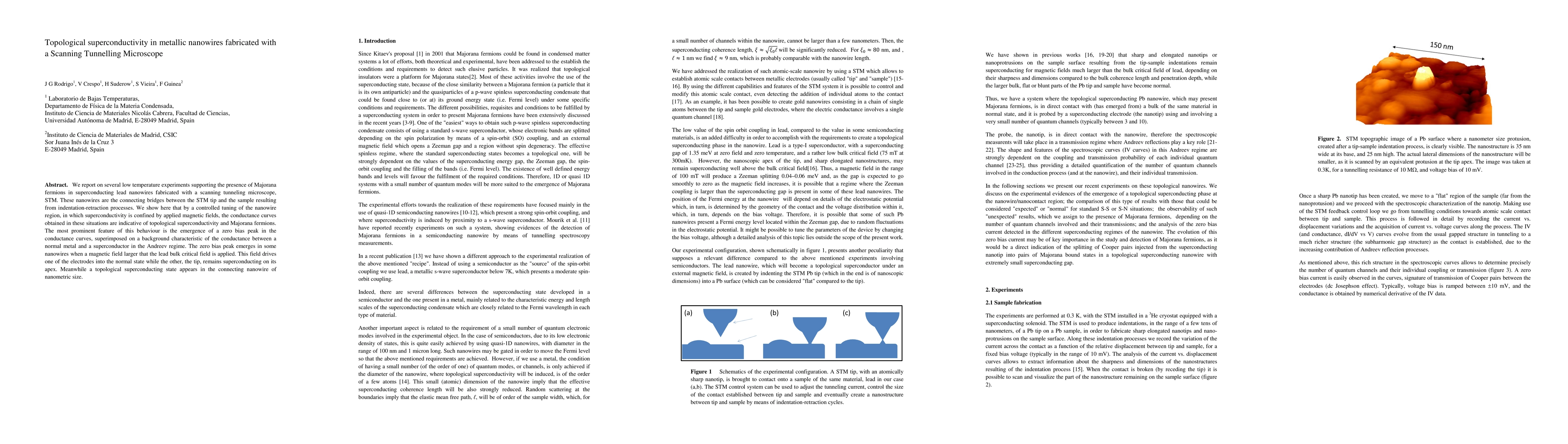 This research demonstrates low-temperature experiments confirming the presence of Majorana fermions in superconducting lead nanowires created via scanning tunneling microscope indentation. The study reveals a zero bias peak in conductance curves indicative of topological superconductivity, emerging under specific magnetic field conditions.