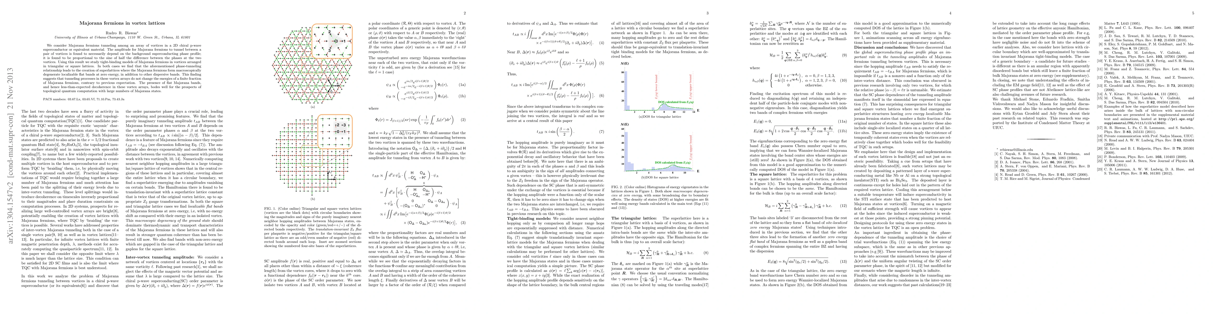 This paper examines Majorana fermions tunneling in vortex lattices within chiral p-wave superconductors, revealing that tunneling amplitudes depend on superconducting phase differences. It finds the creation of macroscopically degenerate Majorana flat bands in triangular and square vortex lattices, suggesting reduced decoherence and promising prospects for topological quantum computation.