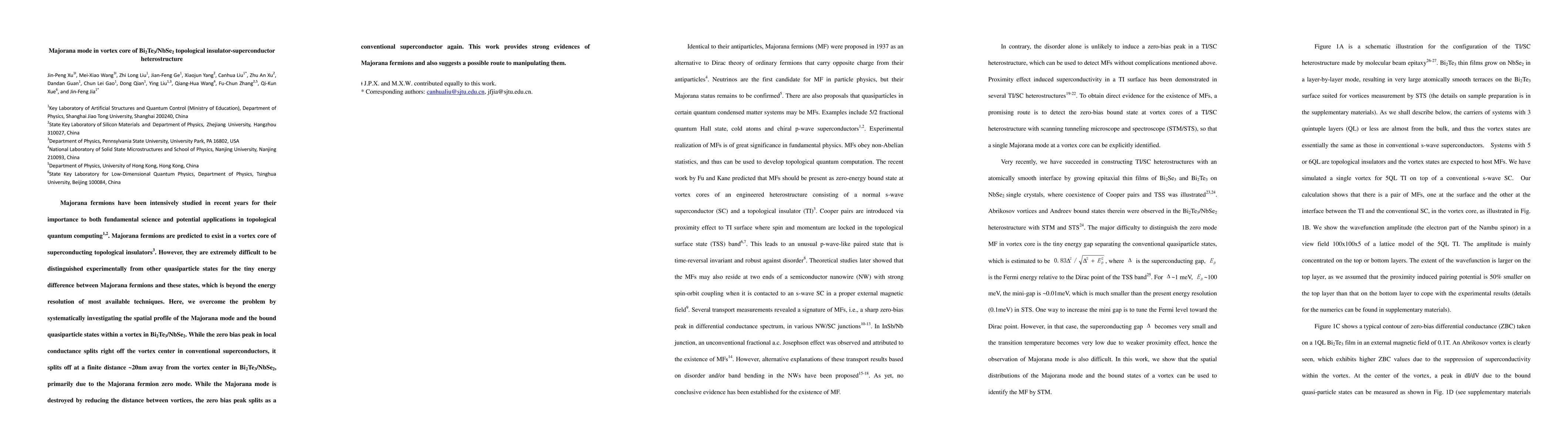 Researchers investigated Majorana fermions in a Bi2Te3/NbSe2 superconductor, finding they exist at a finite distance from vortex centers and can be distinguished by their spatial profile. This work provides strong evidence for Majorana fermions and suggests a way to manipulate them.