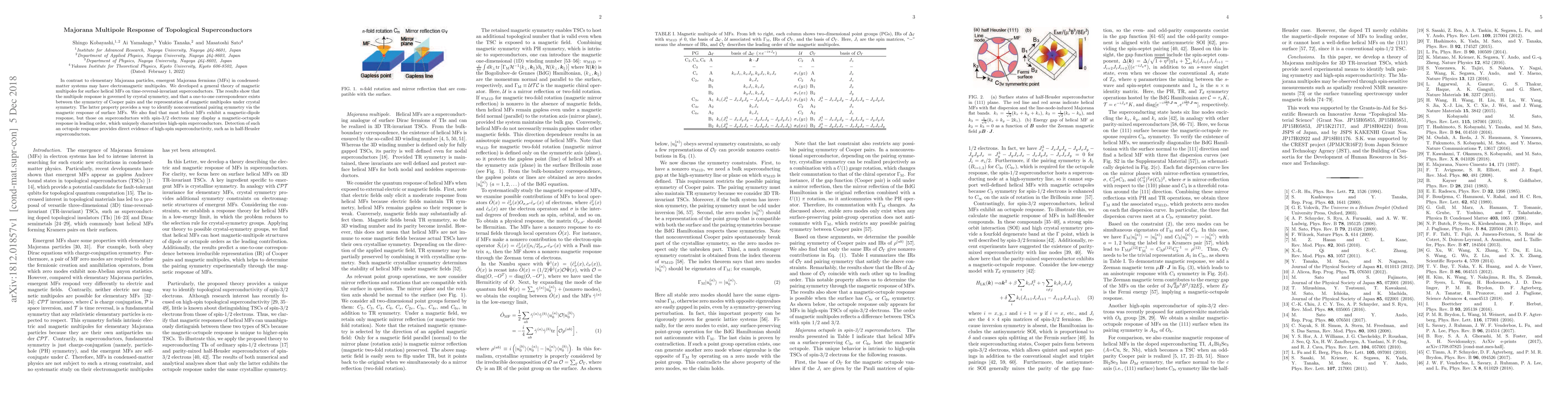 This paper develops a theory for the magnetic multipole response of emergent Majorana fermions in topological superconductors, showing that the response is dictated by crystal symmetry and can reveal nonconventional pairing symmetries. It highlights that while most Majorana fermions exhibit a magnetic-dipole response, those in superconductors with spin-3/2 electrons may show a magnetic-octupole response, providing evidence for high-spin superconductivity.