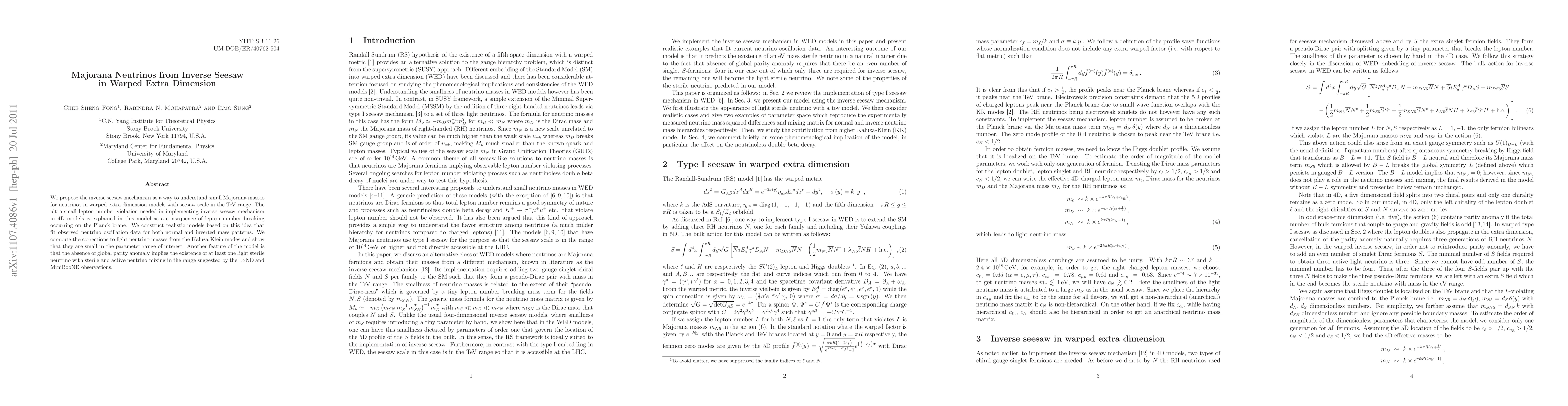 The model introduces a new approach to generating small neutrino masses via the inverse seesaw mechanism in a warped extra dimension framework, providing a simple explanation without fine-tuning parameters.