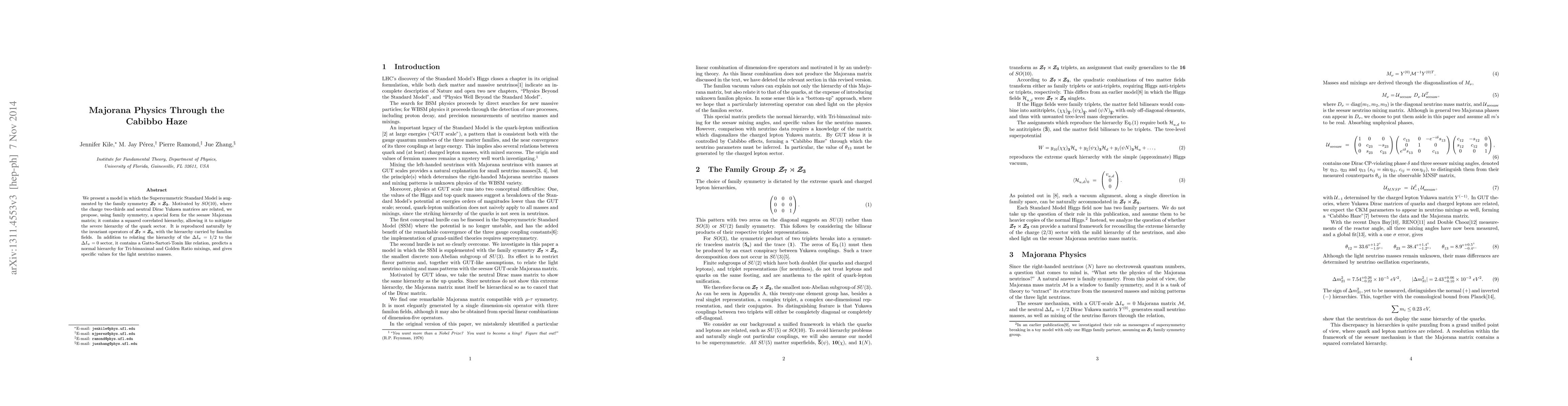 We present a model in which the Supersymmetric Standard Model is augmented by the family symmetry $\bs{\m Z_7 \rtimes \m Z_3}$. Motivated by $SO(10)$, where the charge two-thirds and neutral Dirac Yukawa matrices are related, we propose, using family symmetry, a special form for the seesaw Majorana matrix; it contains a squared correlated hierarchy, allowing it to mitigate the severe hierarchy of the quark sector. It is reproduced naturally by the invariant operators of $\bs{\m Z_7 \rtimes \m Z_3}$, with the hierarchy carried by familon fields. In addition to relating the hierarchy of the $\Delta I_{\rm w}=1/2$ to the $\Delta I_{\rm w}=0$ sector, it contains a Gatto-Sartori-Tonin like relation, predicts a normal hierarchy for Tri-bimaximal and Golden Ratio mixings, and gives specific values for the light neutrino masses.
