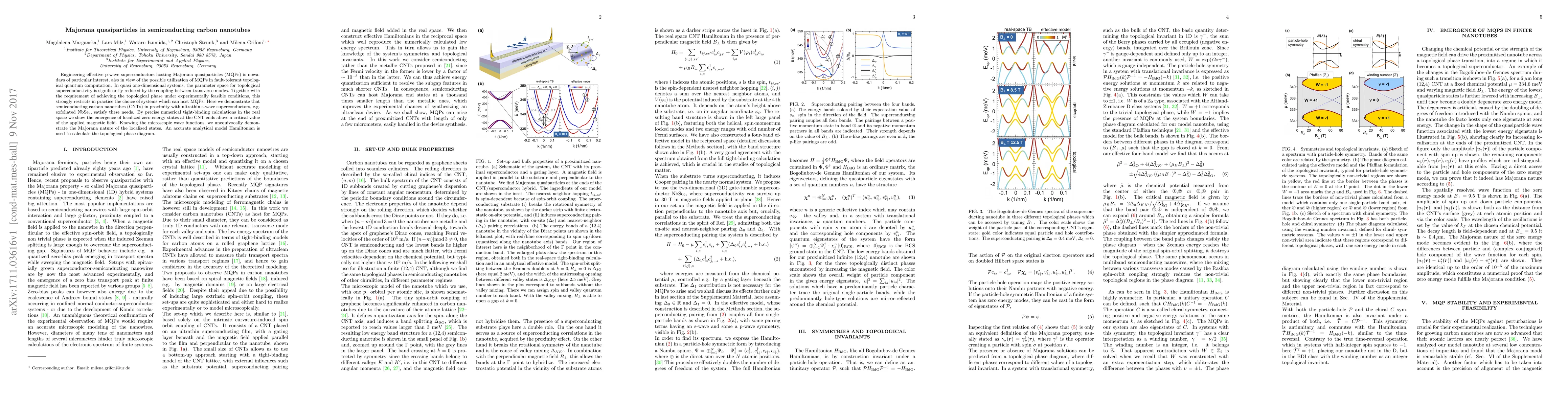 This research demonstrates that semiconducting carbon nanotubes near ultrathin s-wave superconductors can host Majorana quasiparticles, crucial for topological quantum computation, by showing the emergence of zero-energy states at the CNT ends under a critical magnetic field, confirmed via numerical calculations and an analytical model.