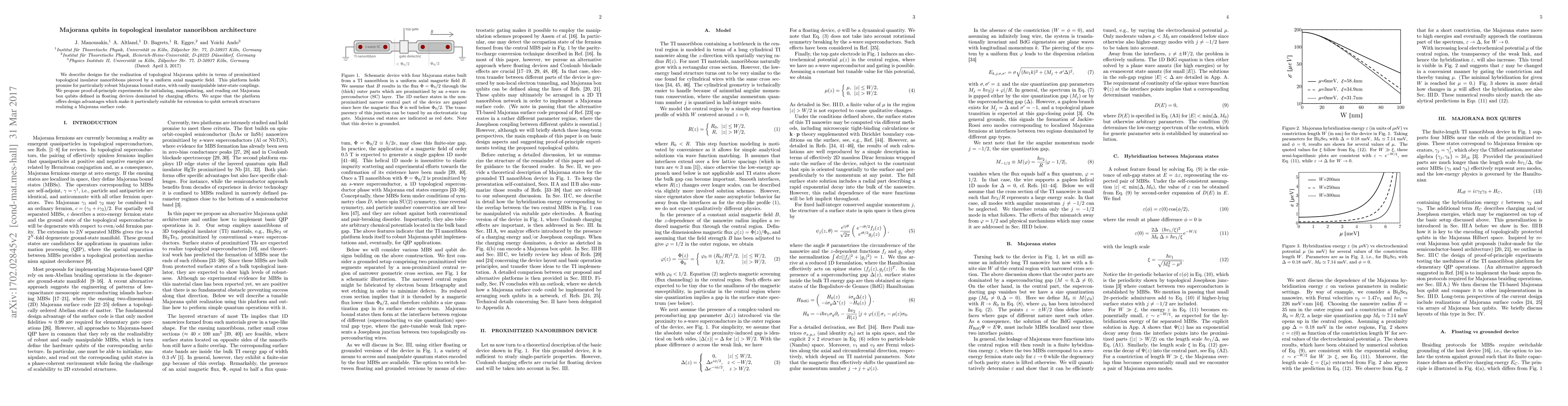 We describe designs for the realization of topological Majorana qubits in terms of proximitized topological insulator nanoribbons pierced by a uniform axial magnetic field. This platform holds promise for particularly robust Majorana bound states, with easily manipulable inter-state couplings. We propose proof-of-principle experiments for initializing, manipulating, and reading out Majorana box qubits defined in floating devices dominated by charging effects. We argue that the platform offers design advantages which make it particularly suitable for extension to qubit network structures realizing a Majorana surface code.