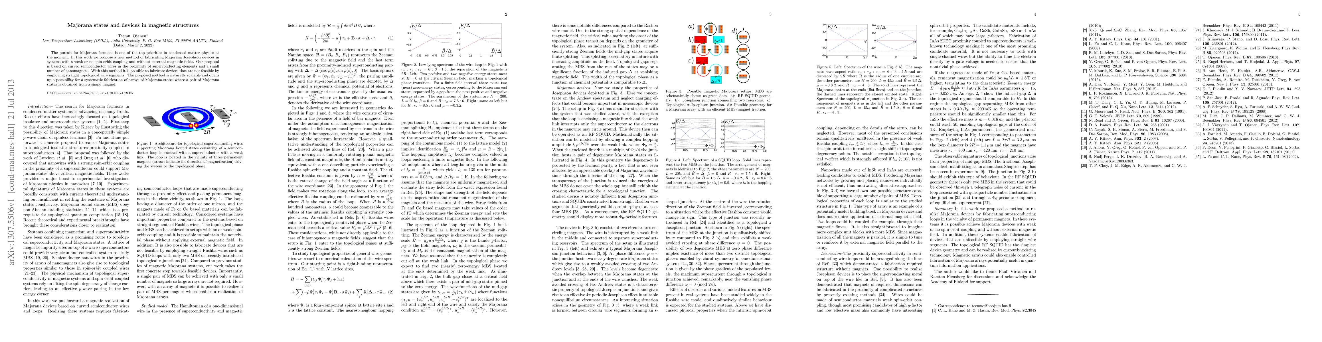 The pursuit for Majorana fermions is one of the top priorities in condensed matter physics at the moment. In this work we propose a new method of fabricating Majorana Josephson devices in systems with a weak or no spin-orbit coupling and without external magnetic fields. Our proposal is based on curved semiconductor wires in the proximity of superconducting elements and a small number of nanomagnets. With this method it is possible to fabricate devices that are not feasible by employing straight topological wire segments. The proposed method is naturally scalable and opens up a possibility for a systematic fabrication of arrays of Majorana states where a pair of Majorana states is obtained from a single magnet.