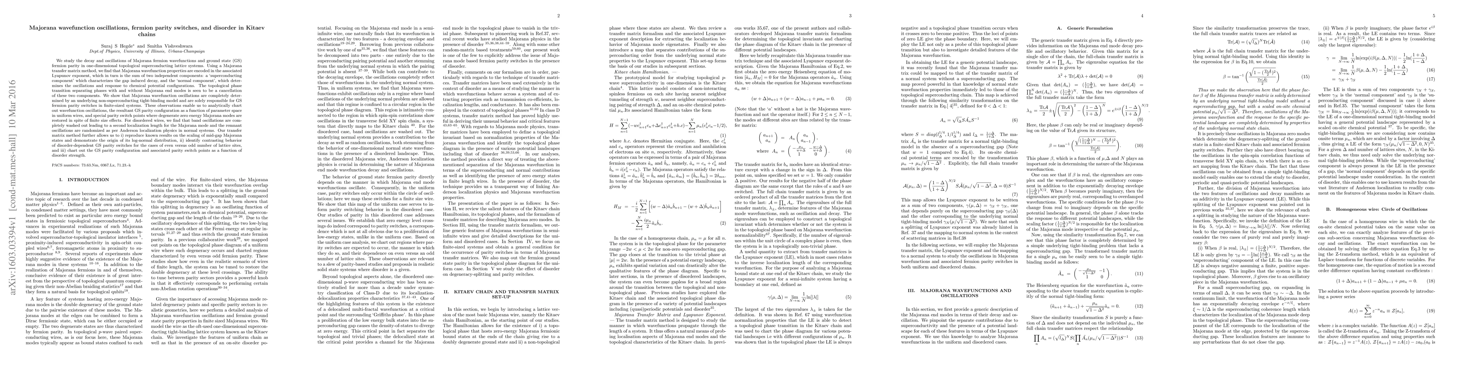 This research investigates Majorana wavefunction oscillations and fermion parity switches in one-dimensional topological superconducting systems using a transfer matrix method. It finds that Majorana properties are governed by superconducting and normal components, leading to topological phase transitions and fermion parity switches, while disorder induces localization and randomization of oscillations akin to Anderson localization.