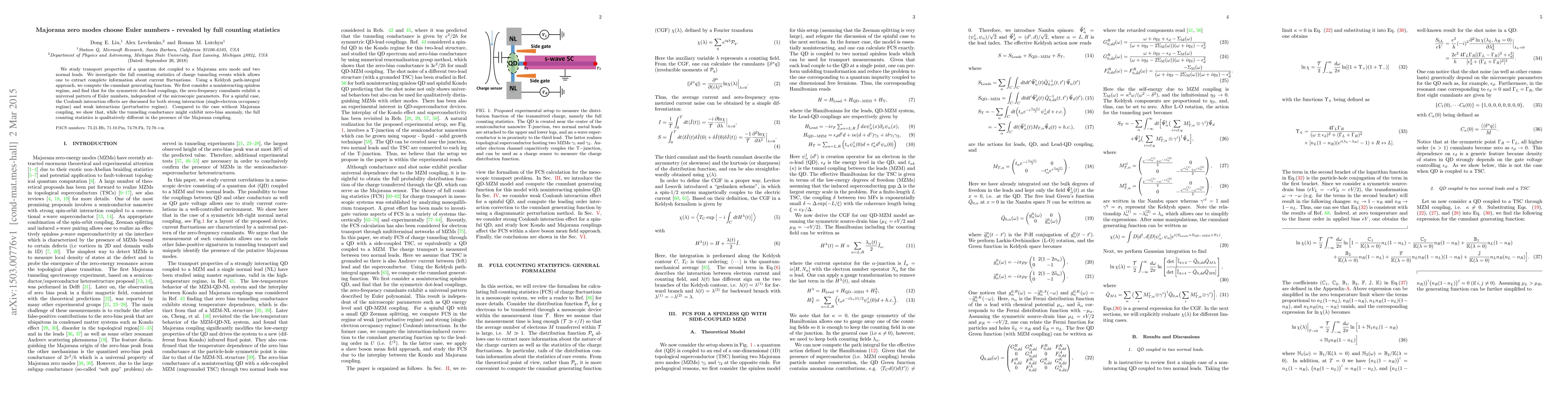 This paper explores the transport properties of a quantum dot linked to a Majorana zero mode and two normal leads, revealing that the full counting statistics of charge tunneling events exhibit a universal pattern of Euler numbers when symmetric dot-lead couplings are present. The study also discusses the impact of Coulomb interactions in both spinful and spinless regimes, showing distinct full counting statistics in the presence of Majorana coupling.