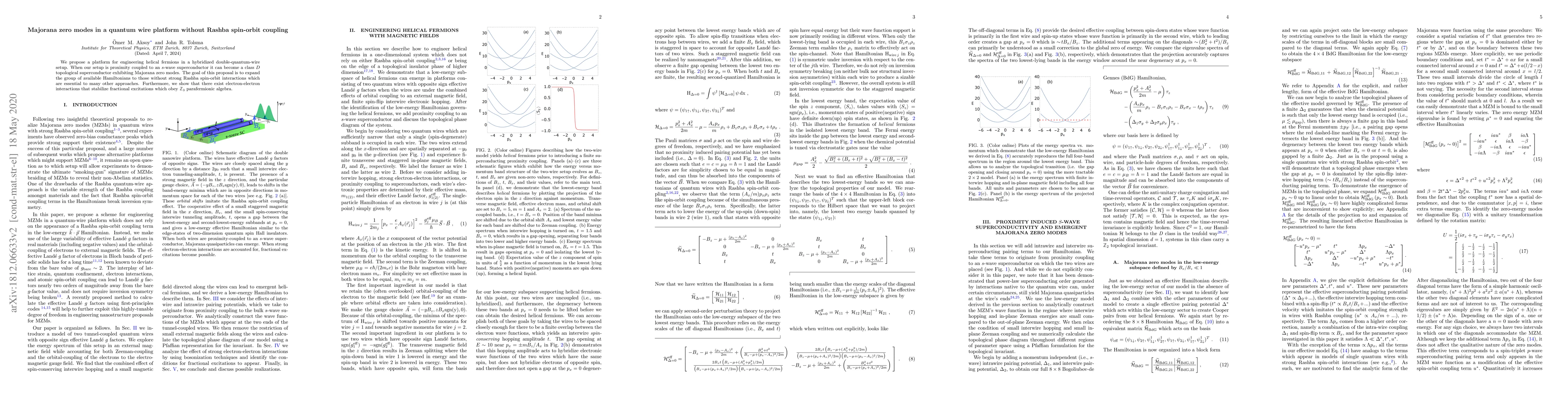 We propose a platform for engineering helical fermions in a hybridized double-quantum-wire setup. When our setup is proximity coupled to an $s$-wave superconductor it can become a class $D$ topological superconductor exhibiting Majorana zero modes. The goal of this proposal is to expand the group of available Hamiltonians to those without strong Rashba spin-orbit interactions which are essential to many other approaches. Furthermore, we show that there exist electron-electron interactions that stabilize fractional excitations which obey $\mathbb{Z}^{\,}_{3}$ parafermionic algebra.