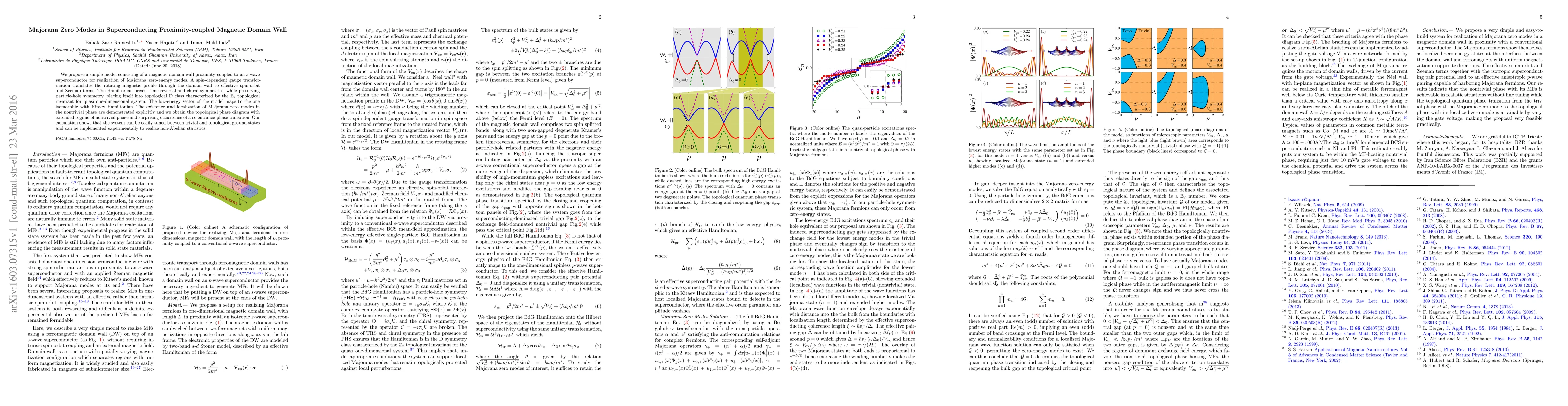 This paper proposes a model for Majorana zero modes in a superconducting magnetic domain wall, demonstrating their existence and localization through topological invariants. The model exhibits a nontrivial phase with a re-entrance phase transition, enabling easy tuning between trivial and topological states for potential experimental realization of non-Abelian statistics.