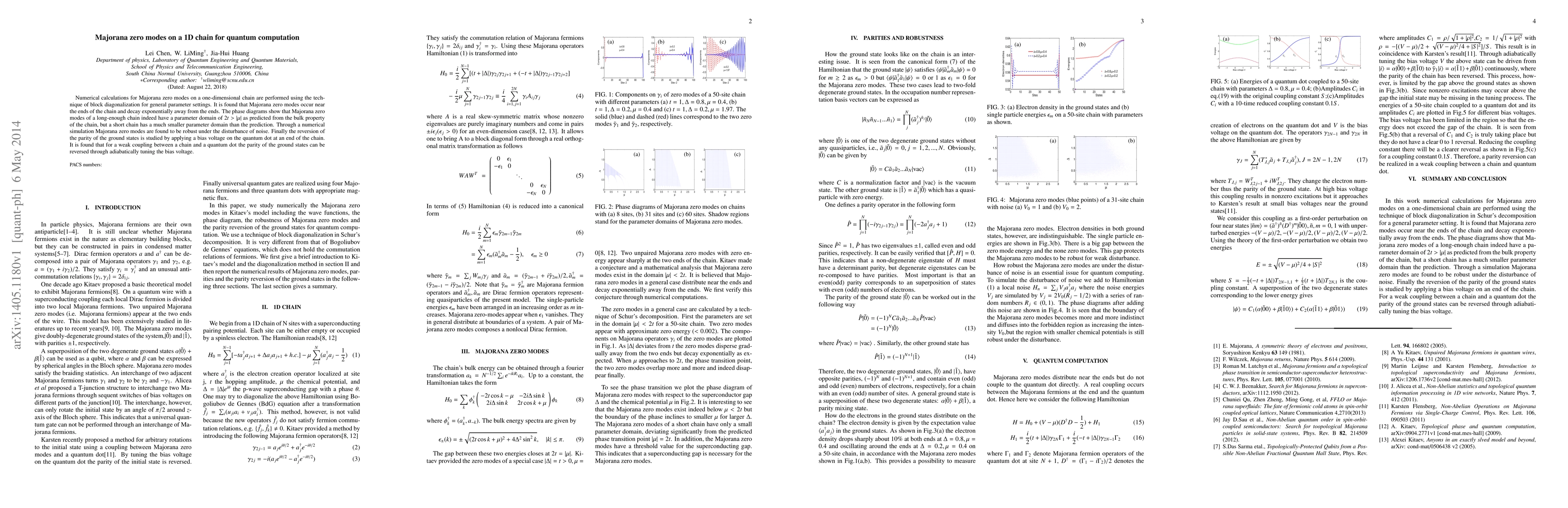 Demonstrates the existence of Majorana modes in one-dimensional chains using numerical calculations