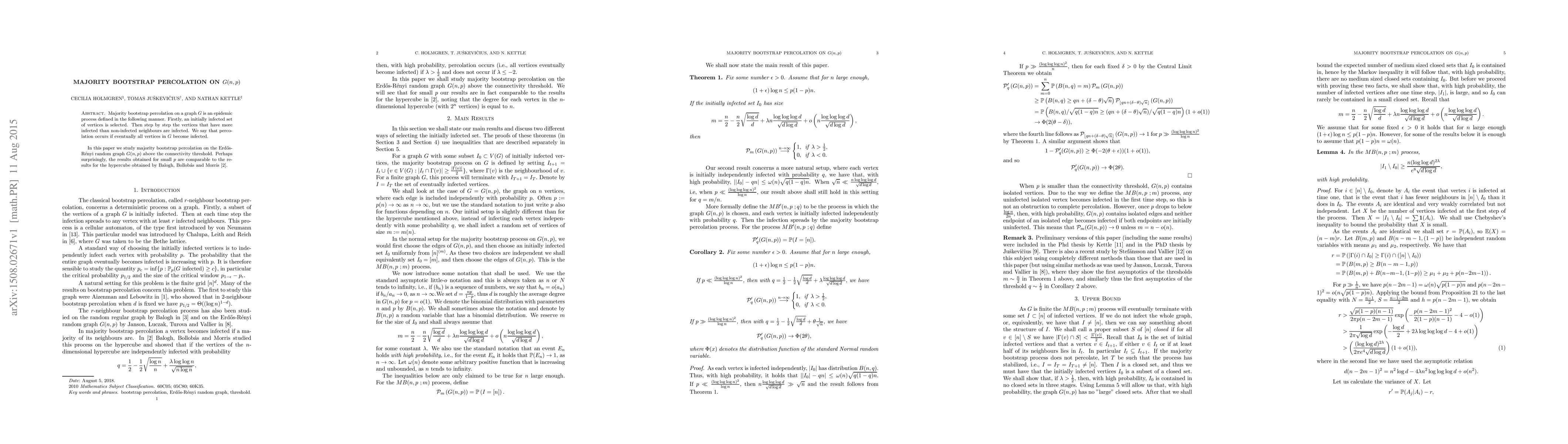 This paper investigates majority bootstrap percolation on the Erdős-Rényi random graph $G(n,p)$ above the connectivity threshold, showing that for small $p$, the percolation behavior is similar to that observed in the hypercube, as demonstrated by Balogh, Bollobás, and Morris in 2009.