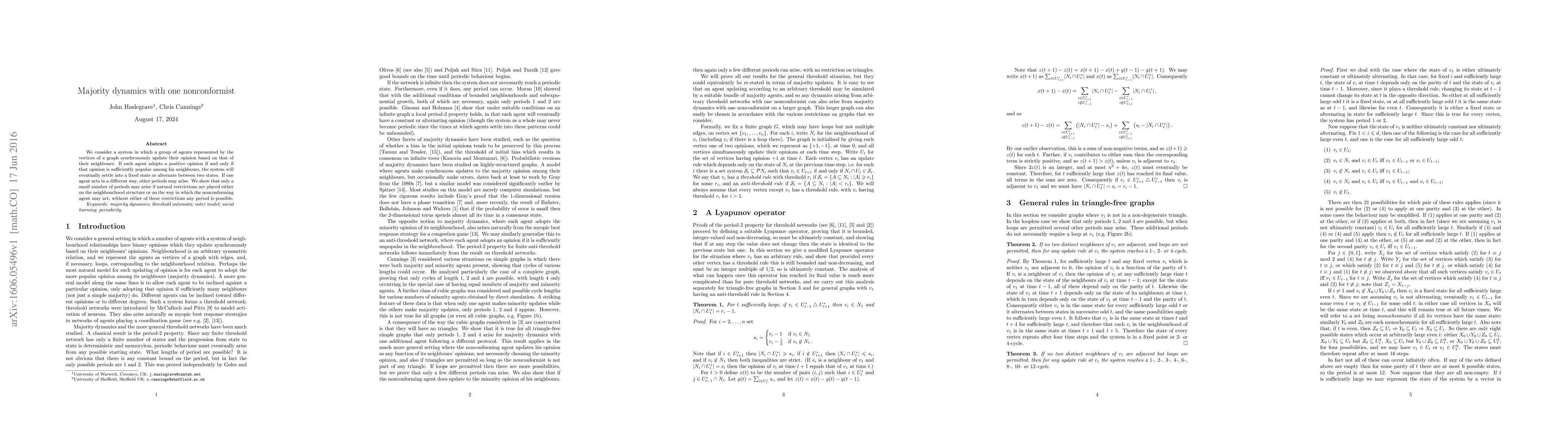 We consider a system in which a group of agents represented by the vertices of a graph synchronously update their opinion based on that of their neighbours. If each agent adopts a positive opinion if and only if that opinion is sufficiently popular among his neighbours, the system will eventually settle into a fixed state or alternate between two states. If one agent acts in a different way, other periods may arise. We show that only a small number of periods may arise if natural restrictions are placed either on the neighbourhood structure or on the way in which the nonconforming agent may act; without either of these restrictions any period is possible.
