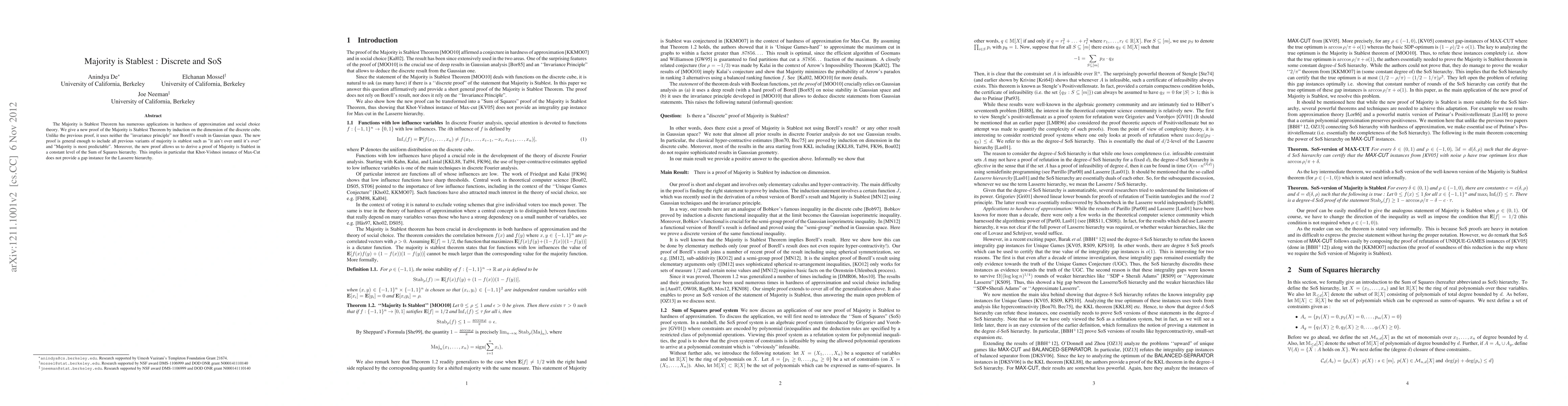 The paper presents a new inductive proof of the Majority is Stablest Theorem, avoiding previous reliance on the invariance principle and Gaussian space results, and extends to various variants. It also demonstrates the theorem's validity within the Sum of Squares hierarchy, refuting the existence of a gap instance for the Lasserre hierarchy in Khot-Vishnoi's Max-Cut problem.