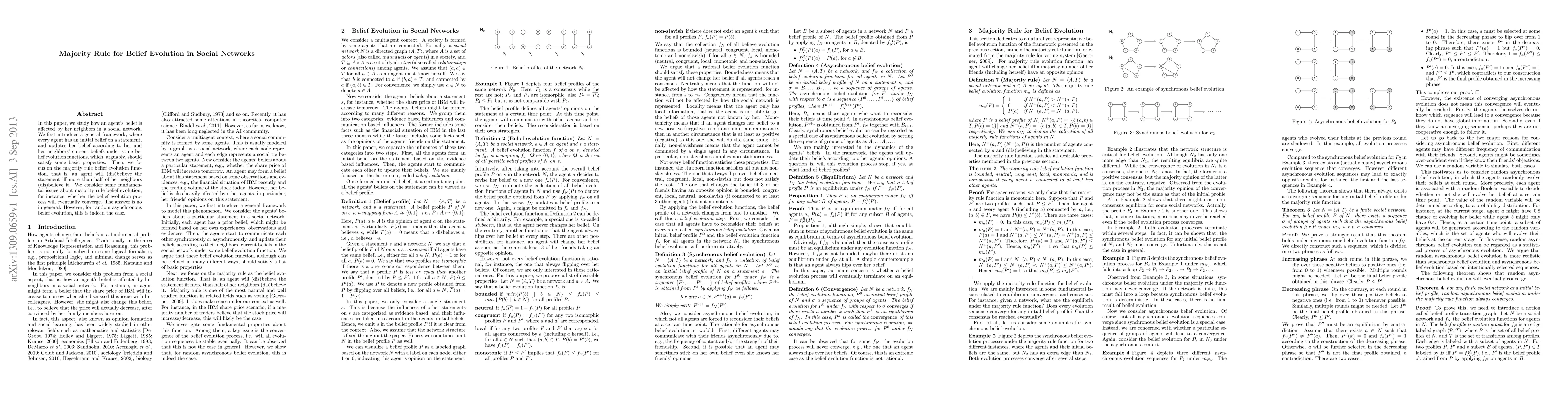 This paper explores how agents' beliefs in a social network evolve under majority rule, where an agent adopts a belief if more than half of her neighbors share it. It finds that while the belief evolution process may not always converge, it does so under random asynchronous updates.