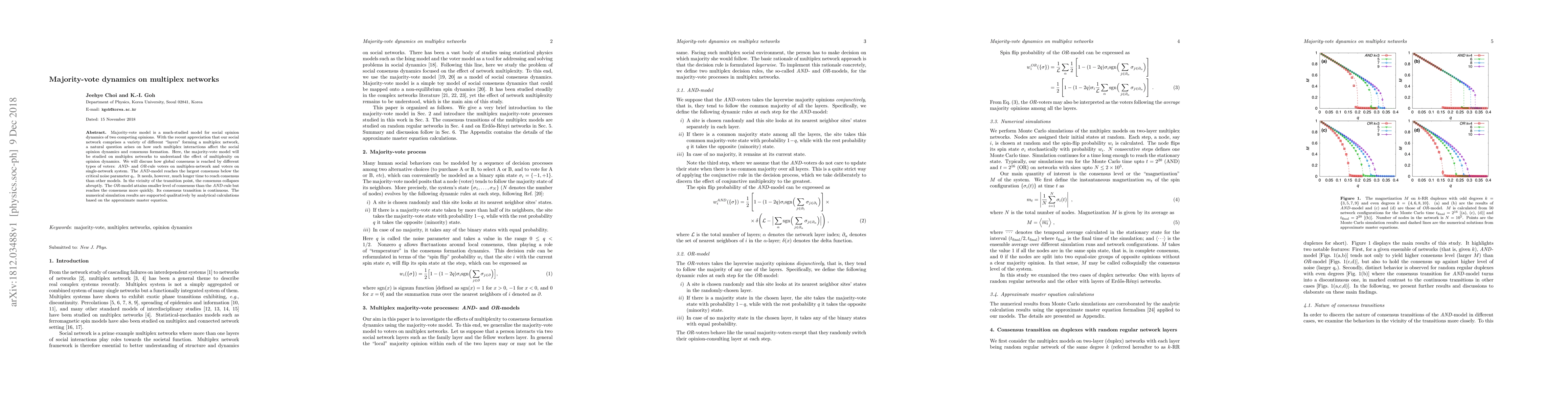 This paper investigates the majority-vote dynamics on multiplex networks, comparing consensus formation between AND-rule and OR-rule voters. The AND-model achieves larger consensus but takes longer, while the OR-model reaches consensus faster but to a lesser extent.