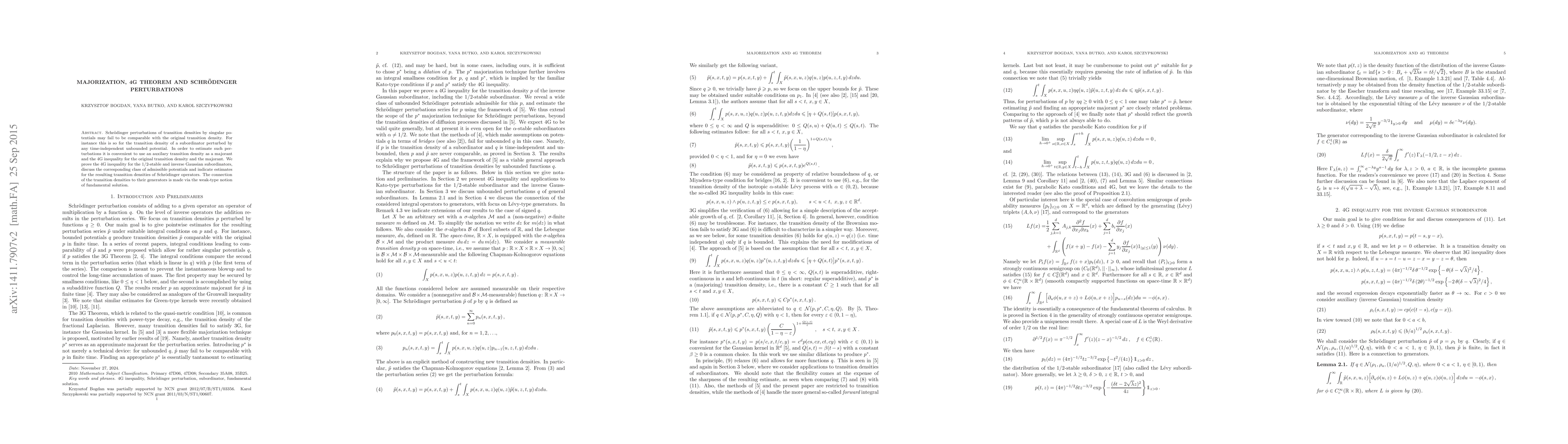 Schr\"odinger perturbations of transition densities by singular potentials may fail to be comparable with the original transition density. For instance this is so for the transition density of a subordinator perturbed by any time-independent unbounded potential. In order to estimate such perturbations it is convenient to use an auxilary transition density as a majorant and the 4G inequality for the original transition density and the majorant. We prove the 4G inequality for the $1/2$-stable and inverse Gaussian subordinators, discuss the corresponding class of admissible potentials and indicate estimates for the resulting transition densities of Schr\"odinger operators. The connection of the transition densities to their generators is made via the weak-type notion of fundamental solution.