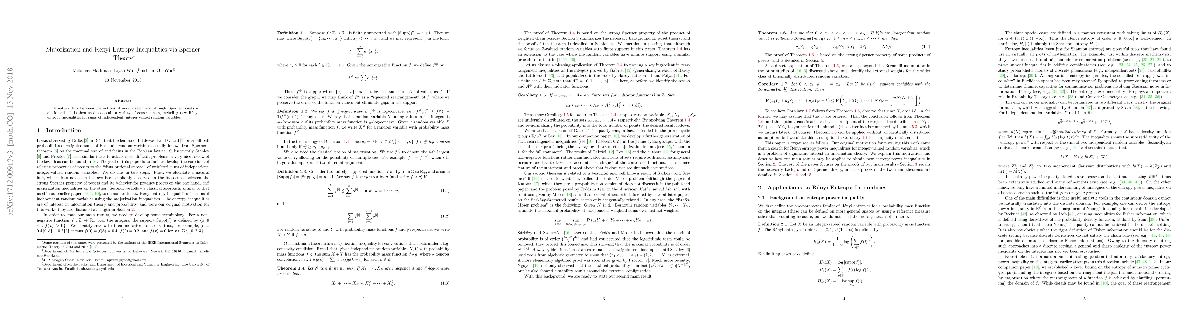 This paper establishes a connection between majorization and strongly Sperner posets, leveraging this link to derive new Rényi entropy inequalities for sums of independent, integer-valued random variables. The results are grounded in Sperner theory.