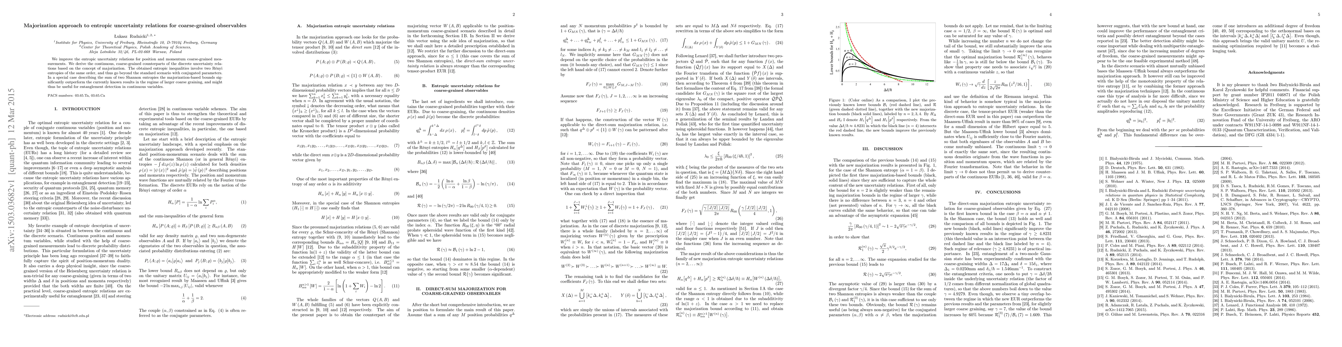 This paper enhances entropic uncertainty relations for coarse-grained measurements using majorization, deriving continuous versions of discrete uncertainty relations. The new entropic inequalities outperform existing results in the regime of larger coarse graining, potentially improving entanglement detection in continuous variables.