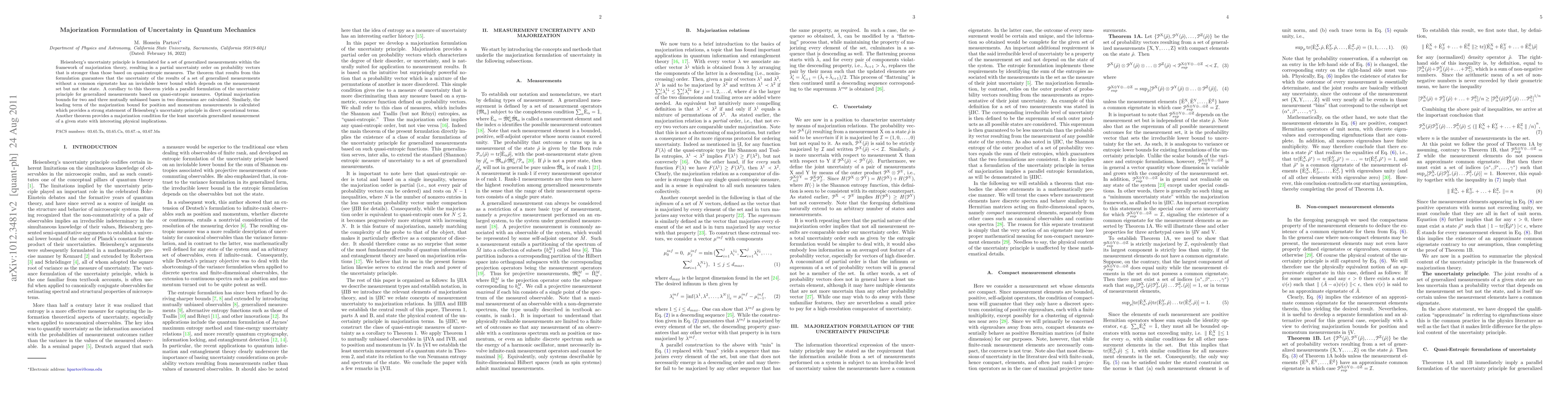 This paper reformulates Heisenberg's uncertainty principle using majorization theory, establishing a stronger partial uncertainty order on probability vectors than quasi-entropic measures. It proves a theorem guaranteeing a lower bound for uncertainty in generalized measurements, independent of the state, with implications for optimal majorization bounds and least uncertain measurements.