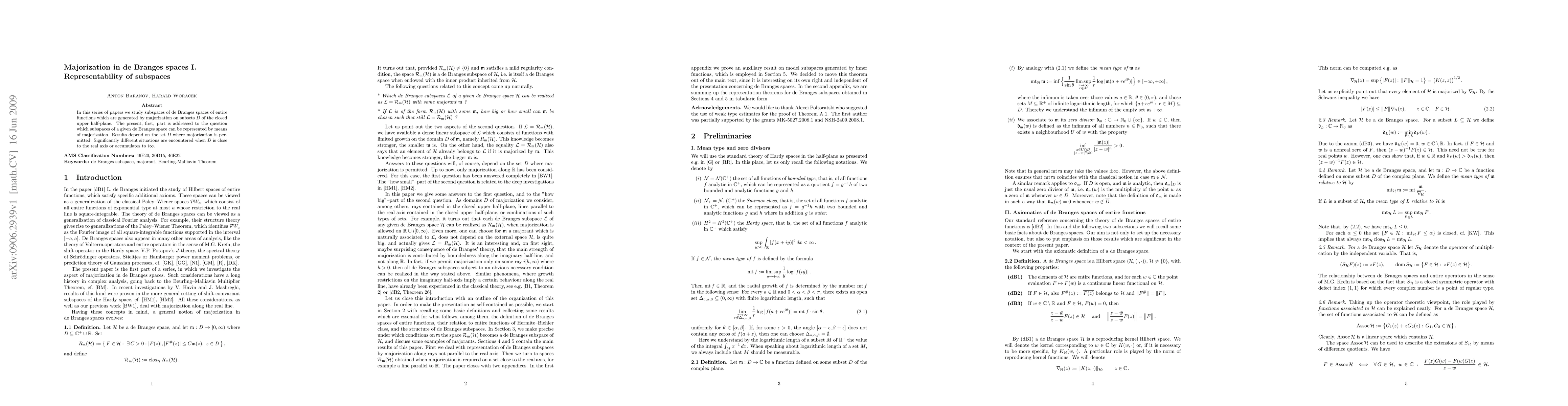 This paper investigates which subspaces within de Branges spaces of entire functions can be represented via majorization on subsets $D$ of the closed upper half-plane, with results varying significantly depending on the location of $D$ relative to the real axis or infinity.