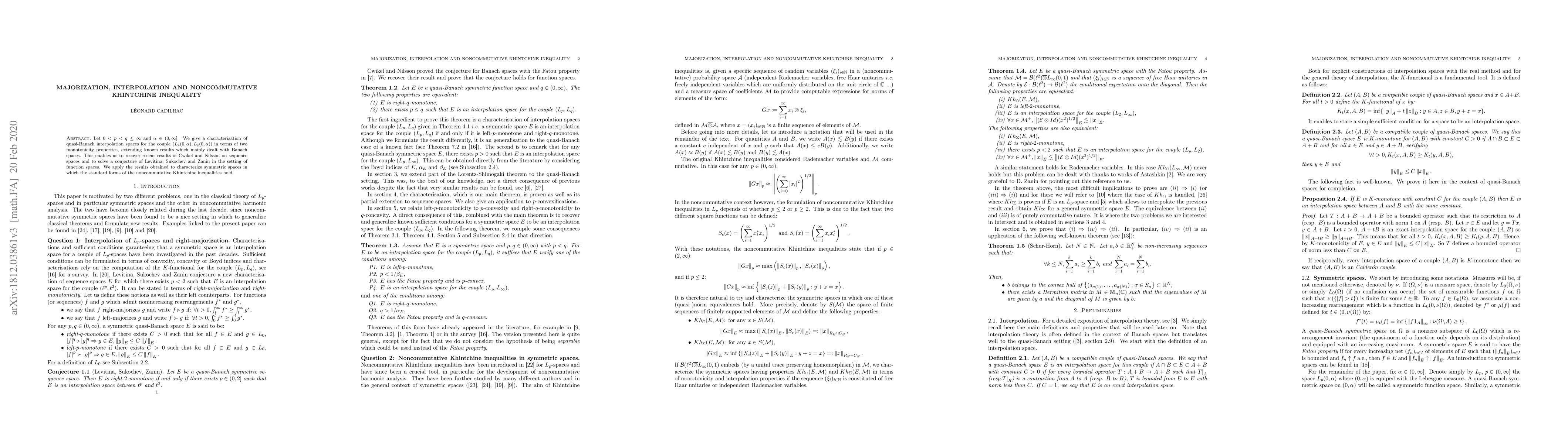 This paper characterizes quasi-Banach interpolation spaces for the couple $(L_p(0,\alpha),L_q(0,\alpha))$ using monotonicity properties, extending results from Banach to quasi-Banach spaces. It also resolves a conjecture regarding sequence spaces and applies the findings to determine symmetric spaces where noncommutative Khintchine inequalities hold.