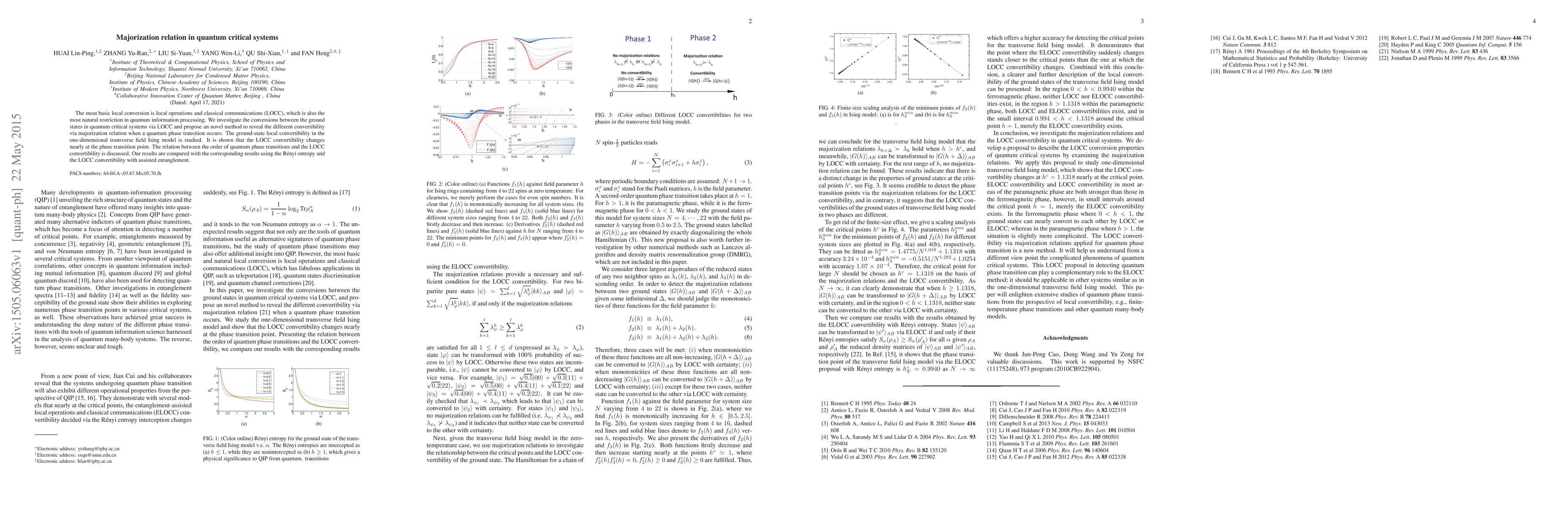 The most basic local conversion is local operations and classical communications (LOCC), which is also the most natural restriction in quantum information processing. We investigate the conversions between the ground states in quantum critical systems via LOCC and propose an novel method to reveal the different convertibility via majorization relation when a quantum phase transition occurs. The ground-state local convertibility in the one-dimensional transverse field Ising model is studied. It is shown that the LOCC convertibility changes nearly at the phase transition point. The relation between the order of quantum phase transitions and the LOCC convertibility is discussed. Our results are compared with the corresponding results using the Renyi entropy and the LOCC convertibility with assisted entanglement.