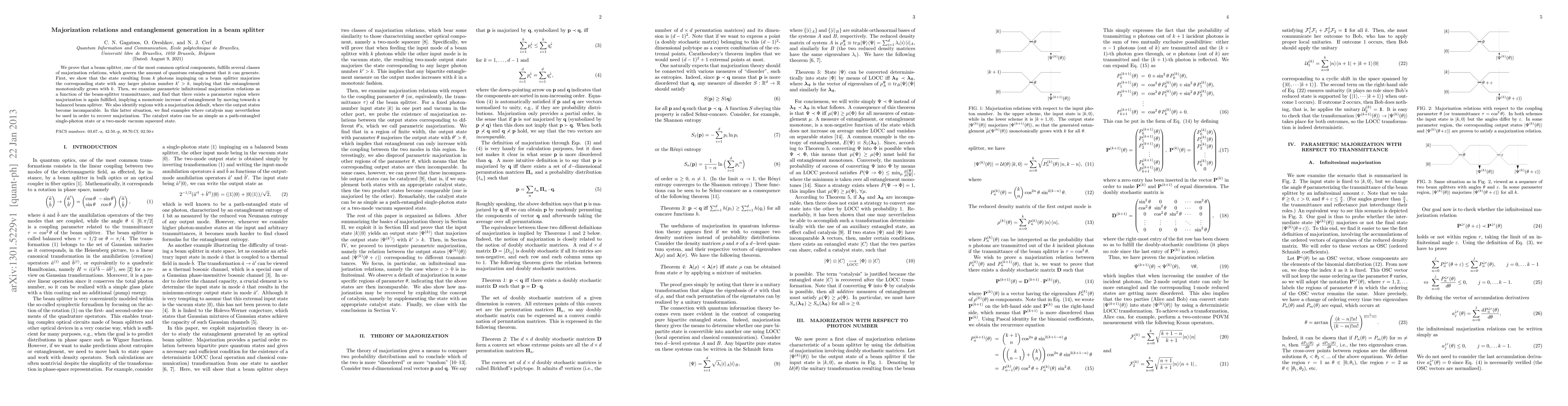 The paper demonstrates that a beam splitter generates quantum entanglement in a manner governed by majorization relations, showing that entanglement monotonically increases with the number of photons and becomes maximal as the beam splitter approaches balance. It also explores scenarios where majorization breaks down but suggests that catalysts like path-entangled single-photon states can restore it.