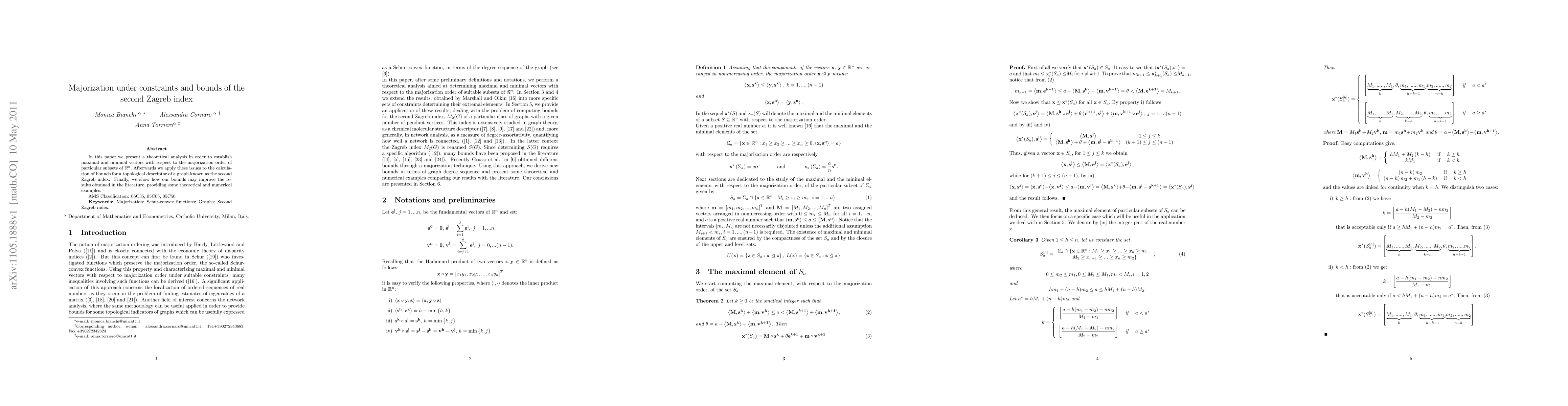 In this paper we present a theoretical analysis in order to establish maximal and minimal vectors with respect to the majorization order of particular subsets of \Re ^n: Afterwards we apply these issues to the calcula- tion of bounds for a topological descriptor of a graph known as the second Zagreb index. Finally, we show how our bounds may improve the re- sults obtained in the literature, providing some theoretical and numerical examples.