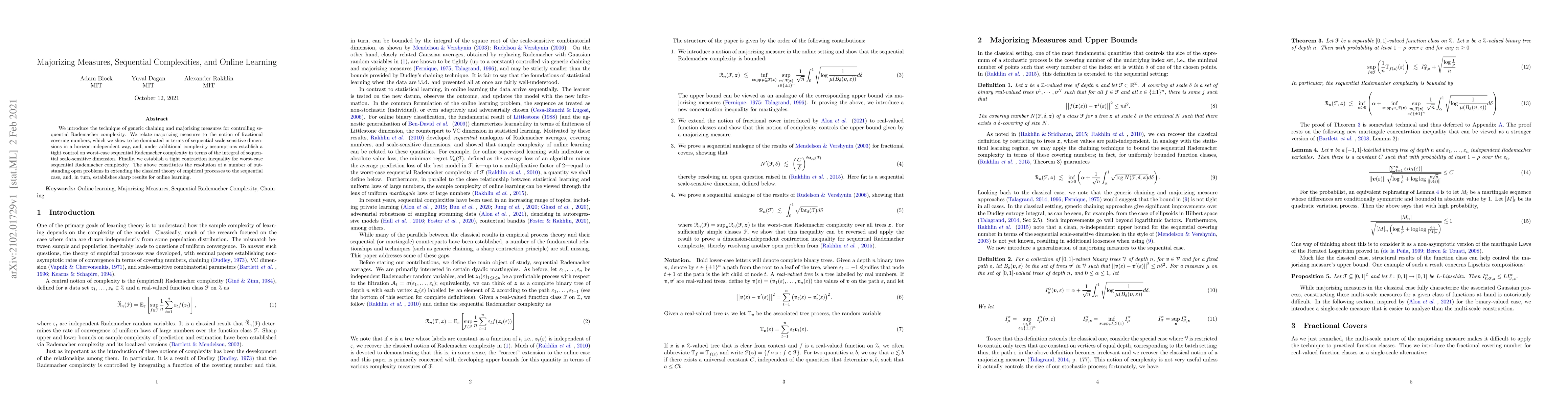 This paper introduces generic chaining and majorizing measures to control sequential Rademacher complexity, relating them to fractional covering numbers and establishing tight bounds for worst-case complexity. It resolves open problems in extending classical empirical processes to the sequential setting and provides sharp results for online learning.