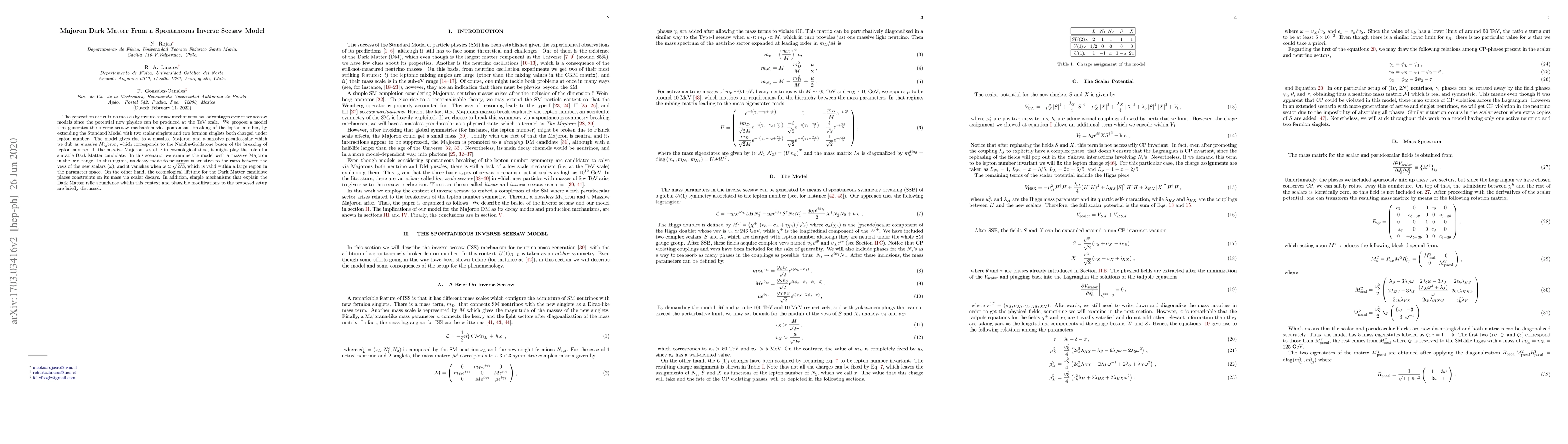 This paper proposes a spontaneous inverse seesaw model extending the Standard Model to generate neutrino masses at the TeV scale. It suggests that a stable massive Majoron in the keV range could serve as a viable Dark Matter candidate, with its decay to neutrinos dependent on the ratio of the vevs of new scalars.