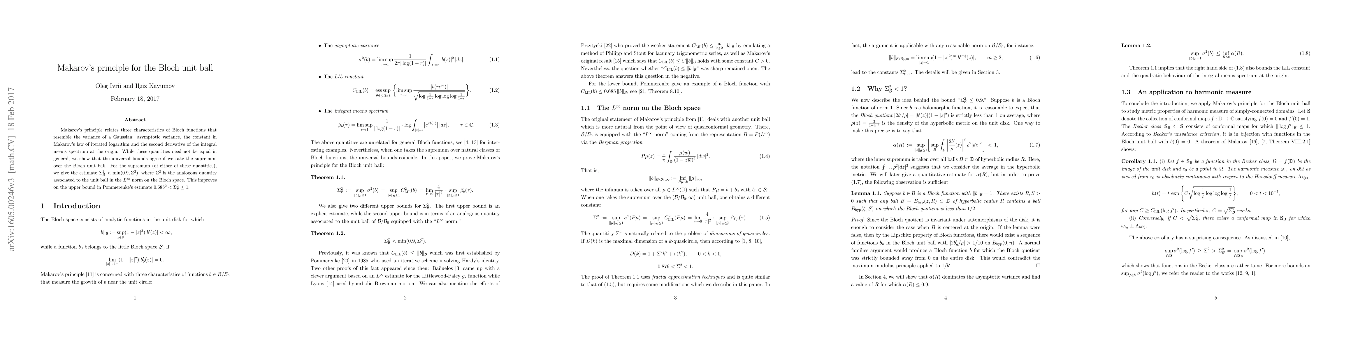 Makarov's principle relates three characteristics of Bloch functions that resemble the variance of a Gaussian: asymptotic variance, the constant in Makarov's law of iterated logarithm and the second derivative of the integral means spectrum at the origin. While these quantities need not be equal in general, we show that the universal bounds agree if we take the supremum over the Bloch unit ball. For the supremum (of either of these quantities), we give the estimate $\Sigma^2_{\mathcal B} < \min(0.9, \Sigma^2)$, where $\Sigma^2$ is the analogous quantity associated to the unit ball in the $L^\infty$ norm on the Bloch space. This improves on the upper bound in Pommerenke's estimate $0.685^2 < \Sigma^2_{\mathcal B} \le 1$.