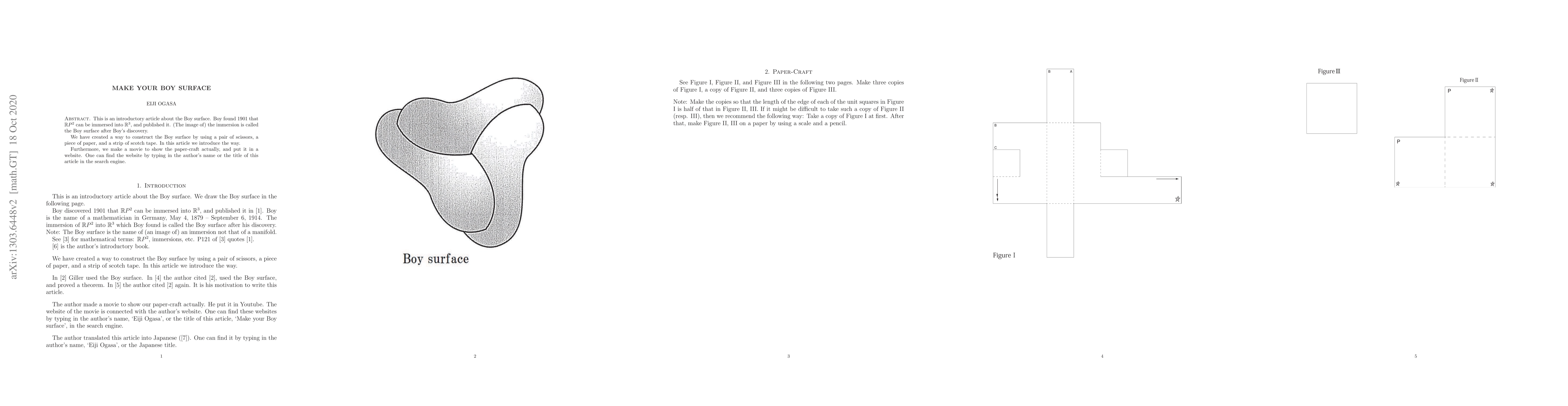 This is an introductory article about the Boy surface. Boy found 1901 that $\mathbb{R}P^2$ can be immersed into $\mathbb{R}^3$, and published it. (The image of) the immersion is called the Boy surface after Boy's discovery. We have created a way to construct the Boy surface by using a pair of scissors, a piece of paper, and a strip of scotch tape. In this article we introduce the way. Furthermore, we make a movie to show the paper-craft actually, and put it in a website. One can find the website by typing in the author's name or the title of this article in the search engine.