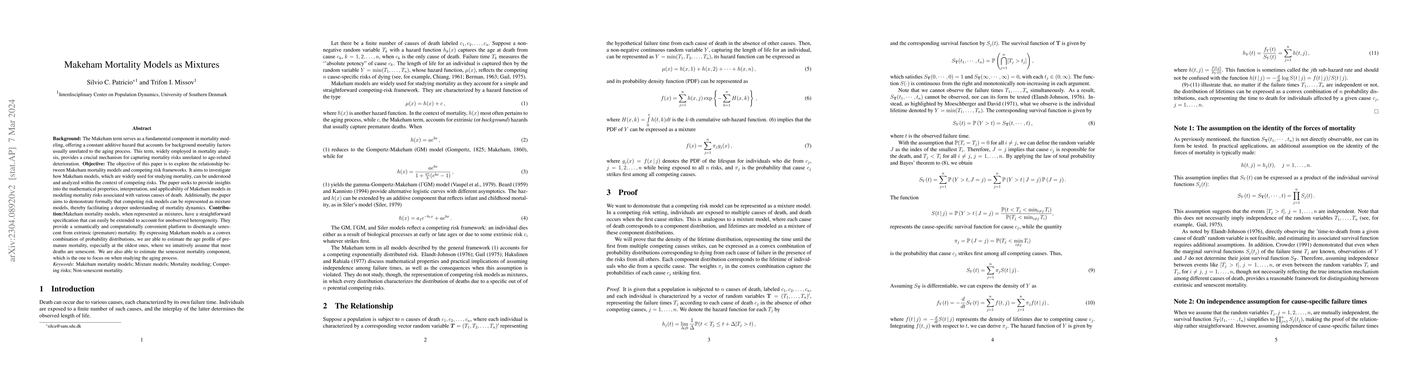 This paper explores how Makeham mortality models, which incorporate a constant additive hazard for background mortality, can be analyzed within competing risk frameworks by representing them as mixture models. It demonstrates that such representations allow for better accommodation of unobserved heterogeneity and clearer distinction between senescent and extrinsic mortality.