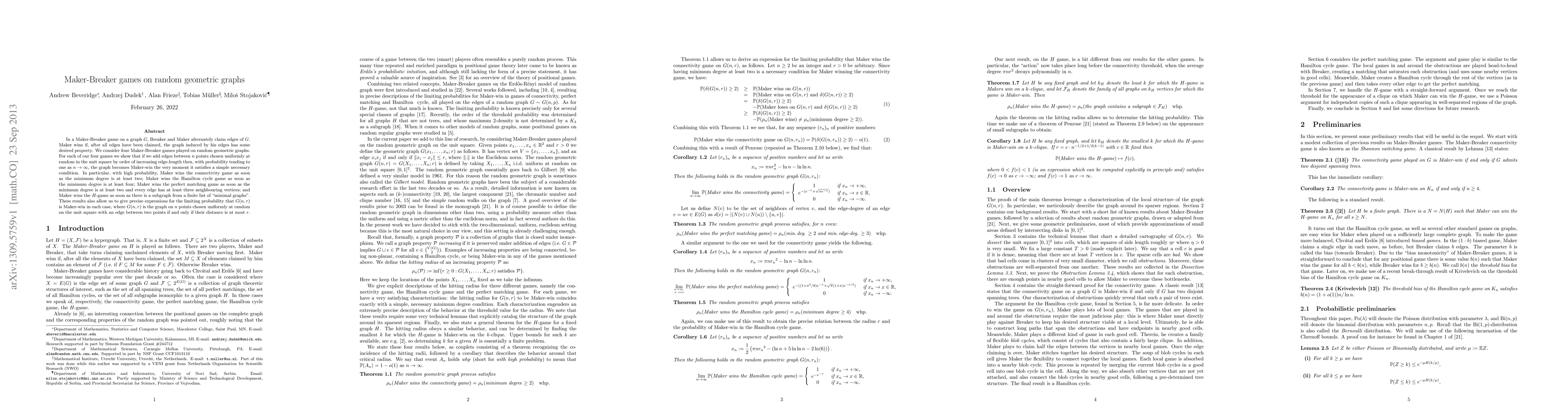 The work extends previous research by considering multiple Maker-Breaker game variants on random geometric graphs and deriving explicit winning conditions for Maker.