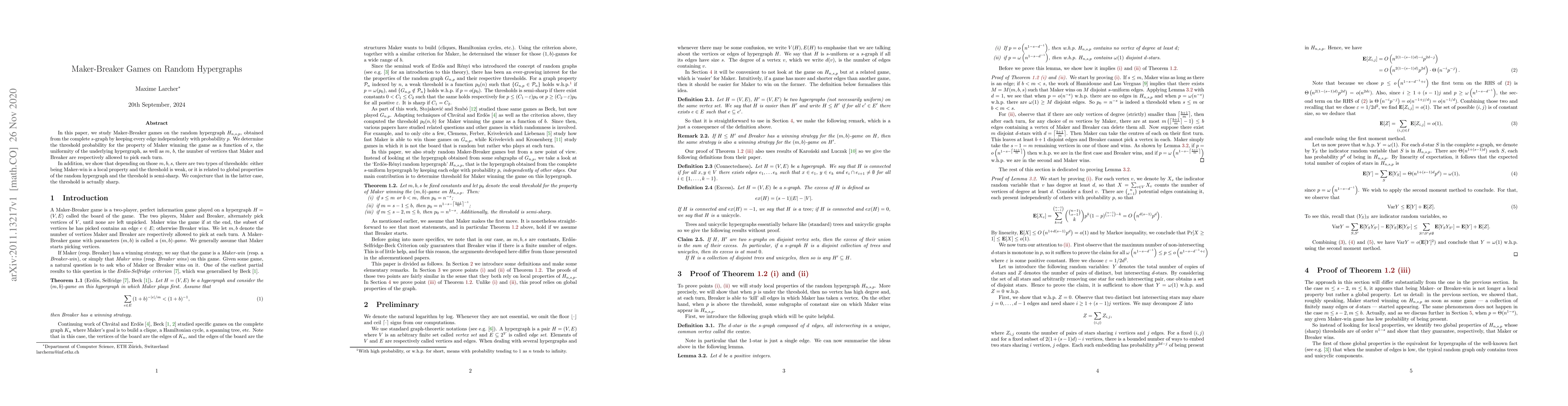 This paper investigates Maker-Breaker games on random hypergraphs $H_{n,s,p}$, determining the threshold probability for Maker's win based on the hypergraph's uniformity and the number of vertices each player can pick. The study reveals two types of thresholds: weak local thresholds or semi-sharp global thresholds, with a conjecture that the latter are sharp.