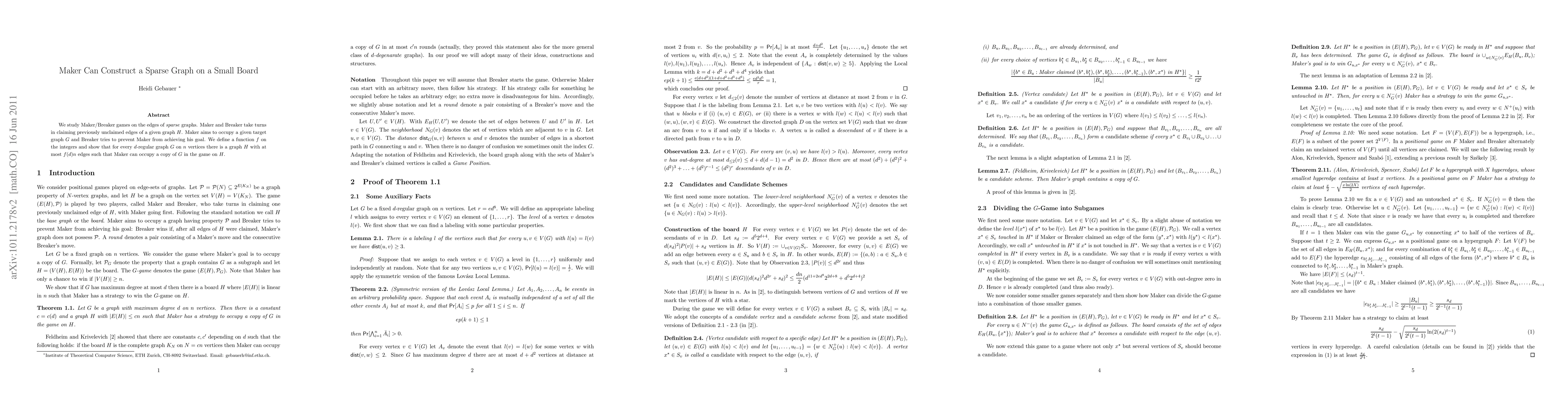 We study Maker/Breaker games on the edges of sparse graphs. Maker and Breaker take turns in claiming previously unclaimed edges of a given graph H. Maker aims to occupy a given target graph G and Breaker tries to prevent Maker from achieving his goal. We define a function f and show that for every d-regular graph G on n vertices there is a graph H with at most f(d)n edges such that Maker can occupy a copy of G in the game on H.