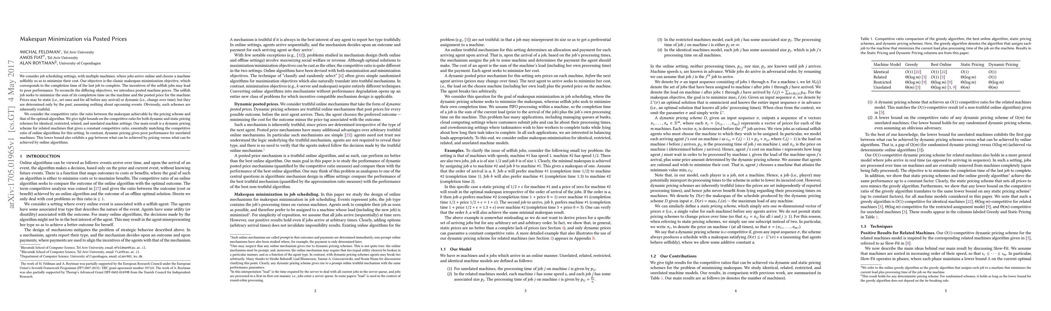 This paper explores job scheduling with selfish jobs using posted prices to minimize makespan, analyzing competitive ratios for both static and dynamic pricing schemes across different machine settings. It introduces a dynamic pricing scheme for related machines achieving a constant competitive ratio, highlighting a significant gap between pricing and online algorithms for unrelated machines.