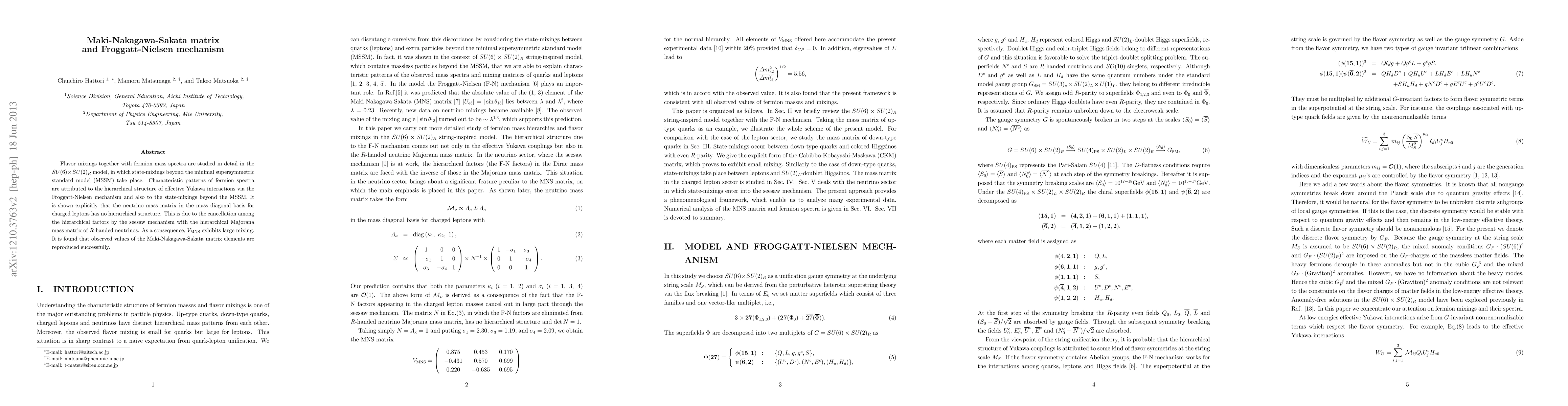 Flavor mixings together with fermion mass spectra are studied in detail in the $SU(6) \times SU(2)_R$ model, in which state-mixings beyond the minimal supersymmetric standard model (MSSM) take place. Characteristic patterns of fermion spectra are attributed to the hierarchical structure of effective Yukawa interactions via the Froggatt-Nielsen mechanism and also to the state-mixings beyond the MSSM. It is shown explicitly that the neutrino mass matrix in the mass diagonal basis for charged leptons has no hierarchical structure. This is due to the cancellation among the hierarchical factors by the seesaw mechanism with the hierarchical Majorana mass matrix of $R$-handed neutrinos. As a consequence, $V_{\rm MNS}$ exhibits large mixing. It is found that observed values of the Maki-Nakagawa-Sakata matrix elements are reproduced successfully.