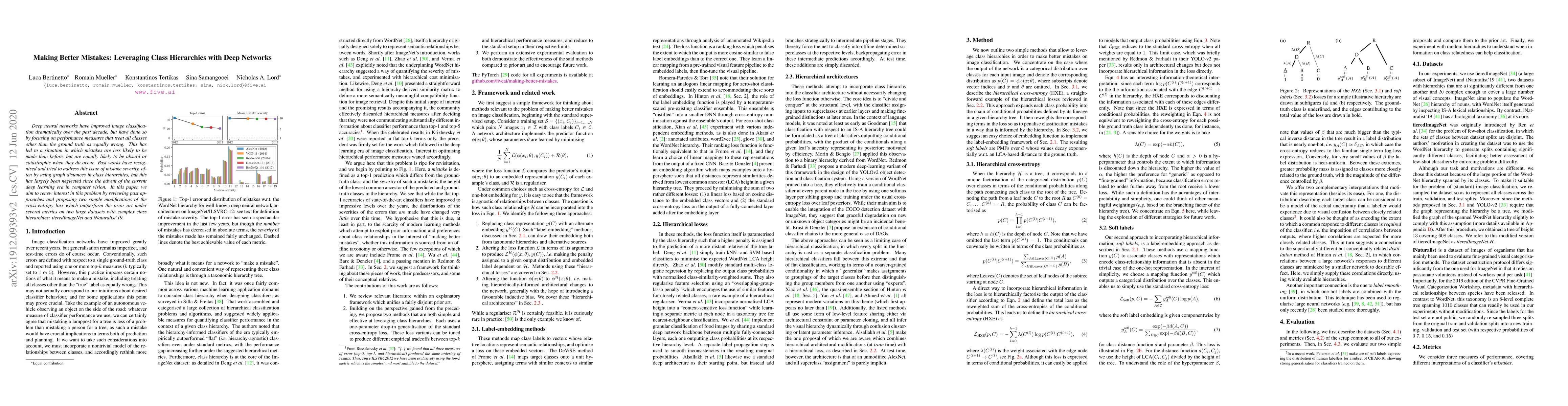 Deep neural networks have improved image classification dramatically over the past decade, but have done so by focusing on performance measures that treat all classes other than the ground truth as equally wrong. This has led to a situation in which mistakes are less likely to be made than before, but are equally likely to be absurd or catastrophic when they do occur. Past works have recognised and tried to address this issue of mistake severity, often by using graph distances in class hierarchies, but this has largely been neglected since the advent of the current deep learning era in computer vision. In this paper, we aim to renew interest in this problem by reviewing past approaches and proposing two simple modifications of the cross-entropy loss which outperform the prior art under several metrics on two large datasets with complex class hierarchies: tieredImageNet and iNaturalist'19.