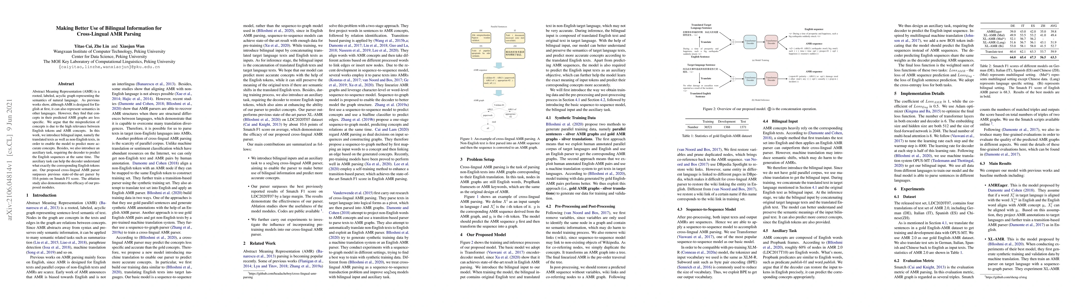 This research paper introduces a new approach to AMR parsing using bilingual input and an auxiliary task, achieving significant improvements in accuracy over previous state-of-the-art parsers.