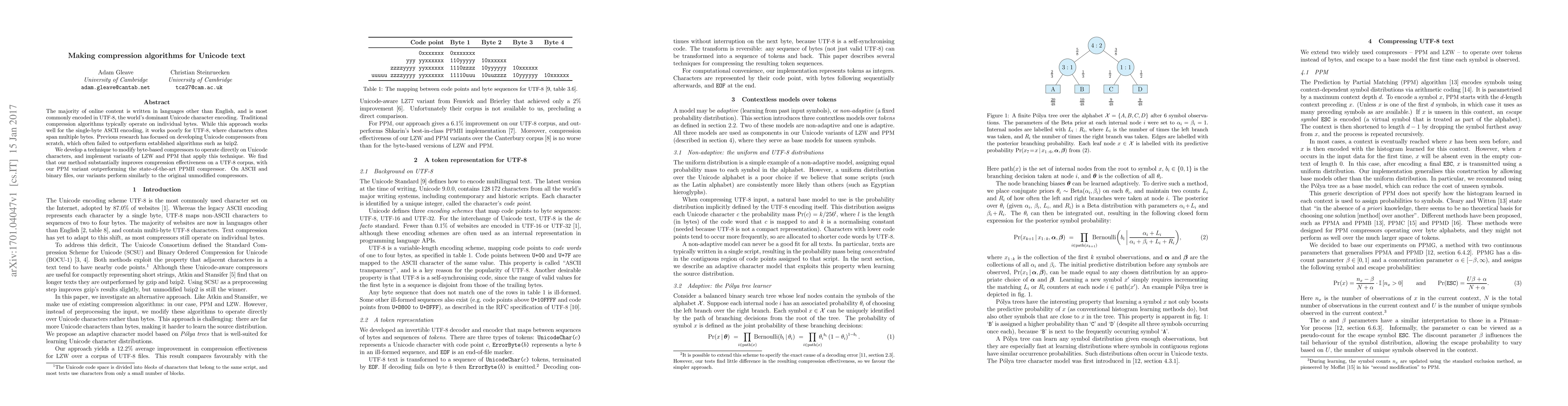 Researchers developed a method to improve compression of UTF-8 encoded text by modifying existing algorithms to operate on Unicode characters, achieving better results than traditional approaches.