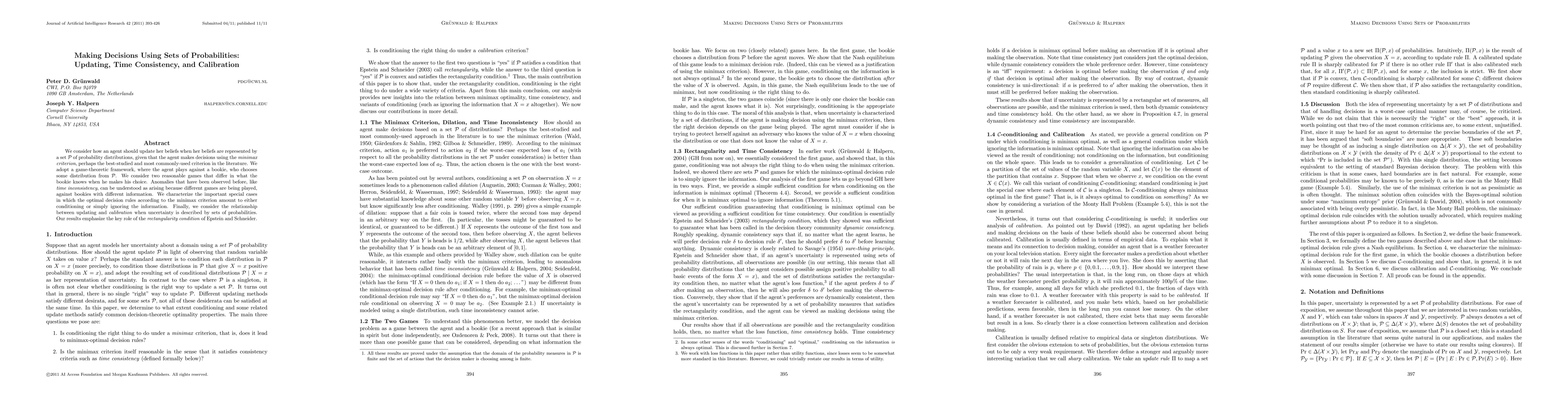 This paper examines how an agent updates beliefs represented by a set of probability distributions while making decisions using the minimax criterion. It explores two games against a bookie with varying information, revealing that time inconsistency arises from different games. The study highlights special cases where optimal decision rules involve conditioning or ignoring information, and discusses the relationship between updating and calibration under sets of probabilities.